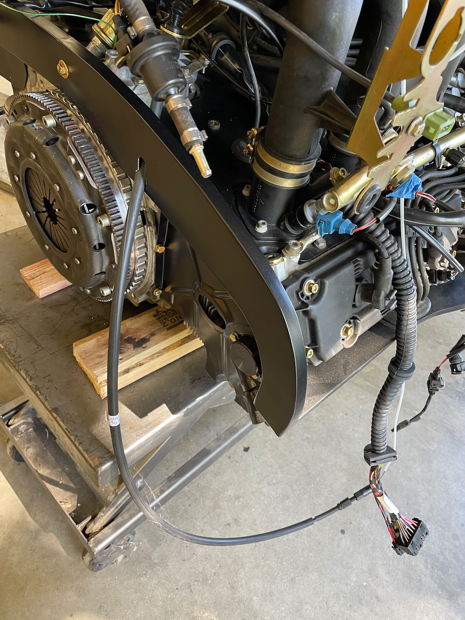 We then installed the oil return fitting below the oil filter on the 3.6 - took about 3 minutes- strangely satisfying though. Then we installed the modified fan shroud "Mickey Mouse" ears and coil bracket with coils. I still have to order the new decals for the coils. Greg did the modification that allows you to rotate the throttle body downward- that was a bit stressful just because we were cutting the plastic bridges (3) between the upper and lower. Glad to report that was done and now we can rotate the throttle body down about 1" or so to be sure we can clear the engine lid. Then we pulled out ALL the wiring harnesses for this motor to go into the car. We have 2 PMS harnesses and then the stock 993 car harness that connected to the engine harness and DME (with 22 connectors). We already replaced the engine harness with a factory new harness- that was about $110= best deal ever. In total, It's a whole lot of wires and connectors. We are working to figure out exactly what we need and what can be discarded. That will be a big project. We also got the PMS throttle cable on the engine- I just need to order the clip that connects it to the throttle body. ![]() ![]() ![]() ![]() ![]() ![]() |
