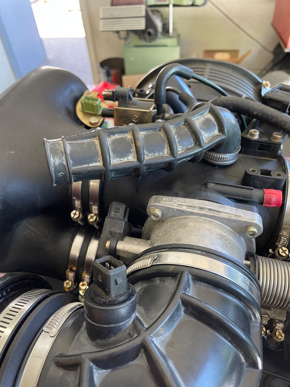 @ClayPerrine - Now that is a great question (IMG:style_emoticons/default/confused24.gif) . The PMS boot which replaces the stock 993 boot has ports for "things". I doubt those are for the MAF sensor. I googled '95 993 3.6 Porsche MAF sensor and I don't think anything like that came with the engine as received. I will have to look into this on Tuesday when Greg and I next meet to work on this. And Clay, thanks for staying tuned in on this swap. I appreciate your expertise. (IMG:style_emoticons/default/smilie_pokal.gif)