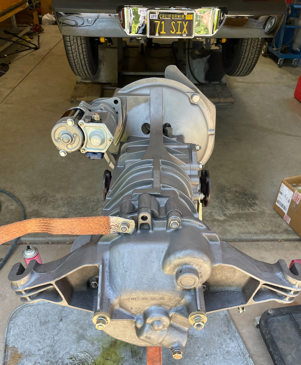 Then we installed the new throttle cable clip- nice and easy. Then we installed the new electric thermostat for the oil cooler and secured the lines to the trunk wall with a riv-nut. Nice and tidy. This thermostat will turn the fans on/off automatically. We are also going to wire switch with an LED indicator to override that in the event I want to manually turn them on/off. Then we pulled out the transaxle to address a output shaft seal leak that we had been unable to completely stop. We installed a speedi-sleeve (Stoddard) on the output shaft and then a new seal on the transaxle and reassembled. It feels like it should not leak again- fingers crossed. Then I cleaned up the transaxle so it will be ready to install once we get the crankshaft ignition sensor bracket that we realized we were missing. Order that from Gaudin and hope to have it by the weekend. The we can install that and then install the transaxle. |