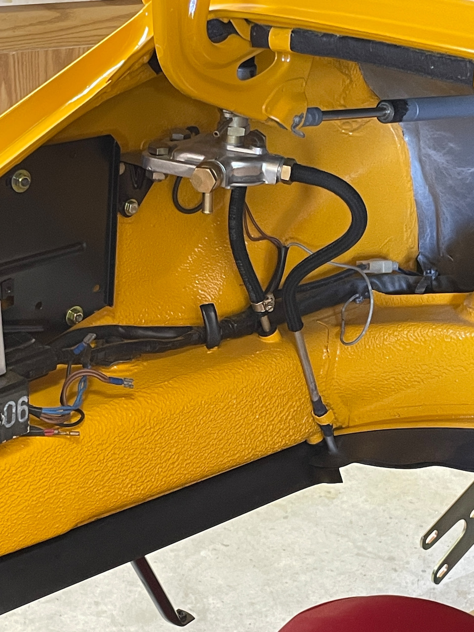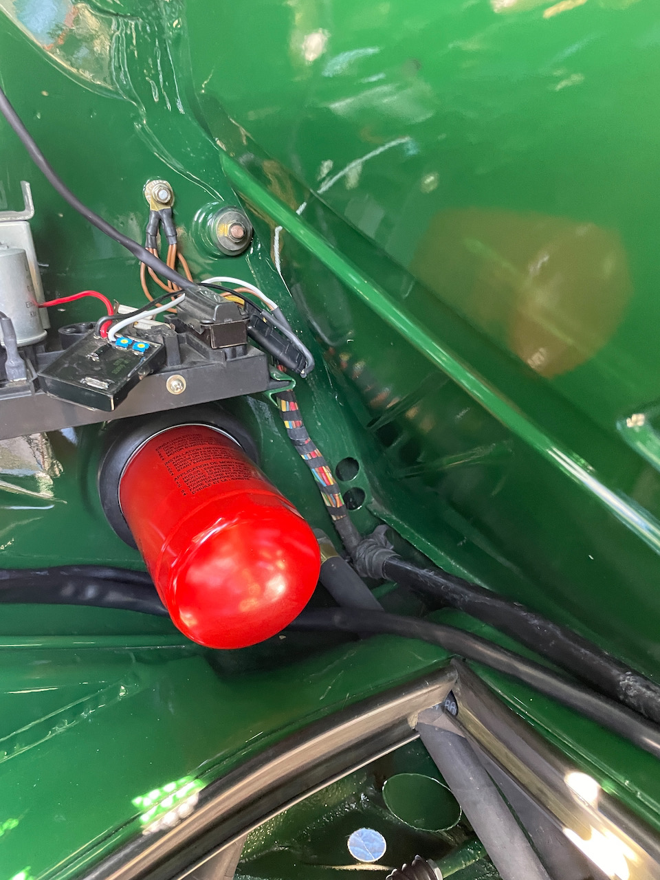 Greg installed the new crank position sensor with the new mounting bracket. Fits nice and looks proper too. Then we installed the MAF sensor, it fits nicely, but I need to order a couple new clamps from RM European to wrap that up. While Greg ran to the dentist I took the opportunity to clean the engine compartment for the eventual motor installation. It was not really bad, but it cleaned up nicely. Now, maybe in a couple weeks the motor will be in its new home. While cleaning the engine compartment I remembered I still had the 3rd brake light flasher module installed that was living in the engine relay board area. I had turned it off about a year ago because Greg's wife saw it flashing when I applied the brakes and said, "Oh, that's annoying". I looked at it and realized she was 100% correct. I had originally bought a flasher module that would flash the 3rd brake light 1-2 times when the brakes were applied and then would not flash every time you applied the brakes if you were sitting in stop/go traffic as that would be really annoying. That module, sadly, was lost and another installed when my car was first reassembled. It flashed the 3rd brake light 5 times per application and did not have a stop/go traffic repeat delay. So now that the engine was out it was the perfect time to remove that module entirely- we did. Then we put the transaxle back where it belongs - with the engine. We replaced the little plastic bits on the clutch fork arm, greased the throw out bearing and it all went together nicely. I was really pleased to see that happen as it means we really are getting close to getting them back in the car. Then for a break in the action, Greg had 2 new 911 door-check pins sitting on his counter. He told me my pins, (plain looking steel with a hole for a pin to secure them) were loose and that was why my doors "clicked" when I opened and closed them. The new 911 pins were installed and my doors are nice and quiet when opening and closing. Sometimes it's the little stuff. My headlight dimmer reostat was not working properly; it was more of an on/off situation. I sourced another early headlight switch and we swapped the old one out and the new one in and now everything works as new. It's not like I dim my dash lights, but it bugged me that the switch was not functioning properly. Next Greg tackled the wiring for my oil cooler fans. We previously installed the Setbrab in-line thermostat for the fans. I wanted the fans to operate automatically - let's face it I am old and don't want to forget having to turn them on when the oil gets hot. But, I also wanted a manual switch to turn them on too. So we repurposed my rear window defroster switch, (the rear defroster did not work anyway) for that function. Greg is a terrific electrician technician (of course) and made this look simple aside from the contortionist positions required to get up under the dash as he is 6'3". Our next tasks will be to sort the engine vacuum lines and hopefully start getting the electrical for the engine figured out so we can get the DME mounted in the car and get the wiring from the dash to the engine done. We also still have to make the idle control valve pipe so we can mount that where we want instead of the stock 993 location. My brother and I are planning on attending the Diablo Region Wash 'n Shine at the Danville Livery (Sycamore and San Ramon Valley Blvd.) on Monday (Holiday). Greg has entered his Willow Green 914-6 GT. If you have not seen that beauty in person- I recommend trying to make it. It is always a well attended function. Now, I mention that event, as I really hope someone with a '95 993 in stock form is there too. We need to look and take pictures to sort my stuff. So I have my fingers crossed! If you notice that little square black module (above) with the 3 wires, that is the 3rd brake light flasher we removed. |