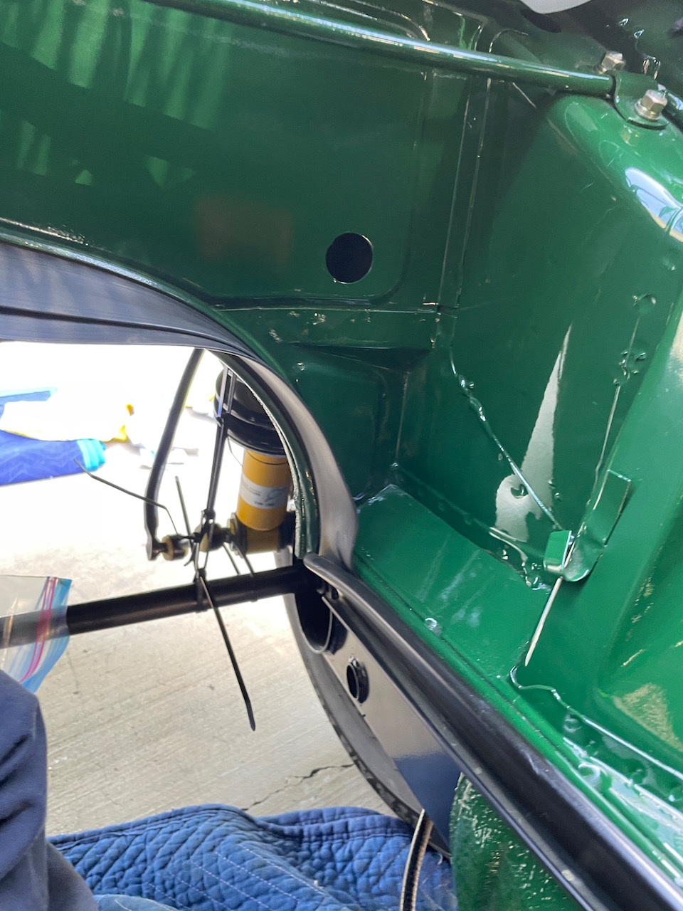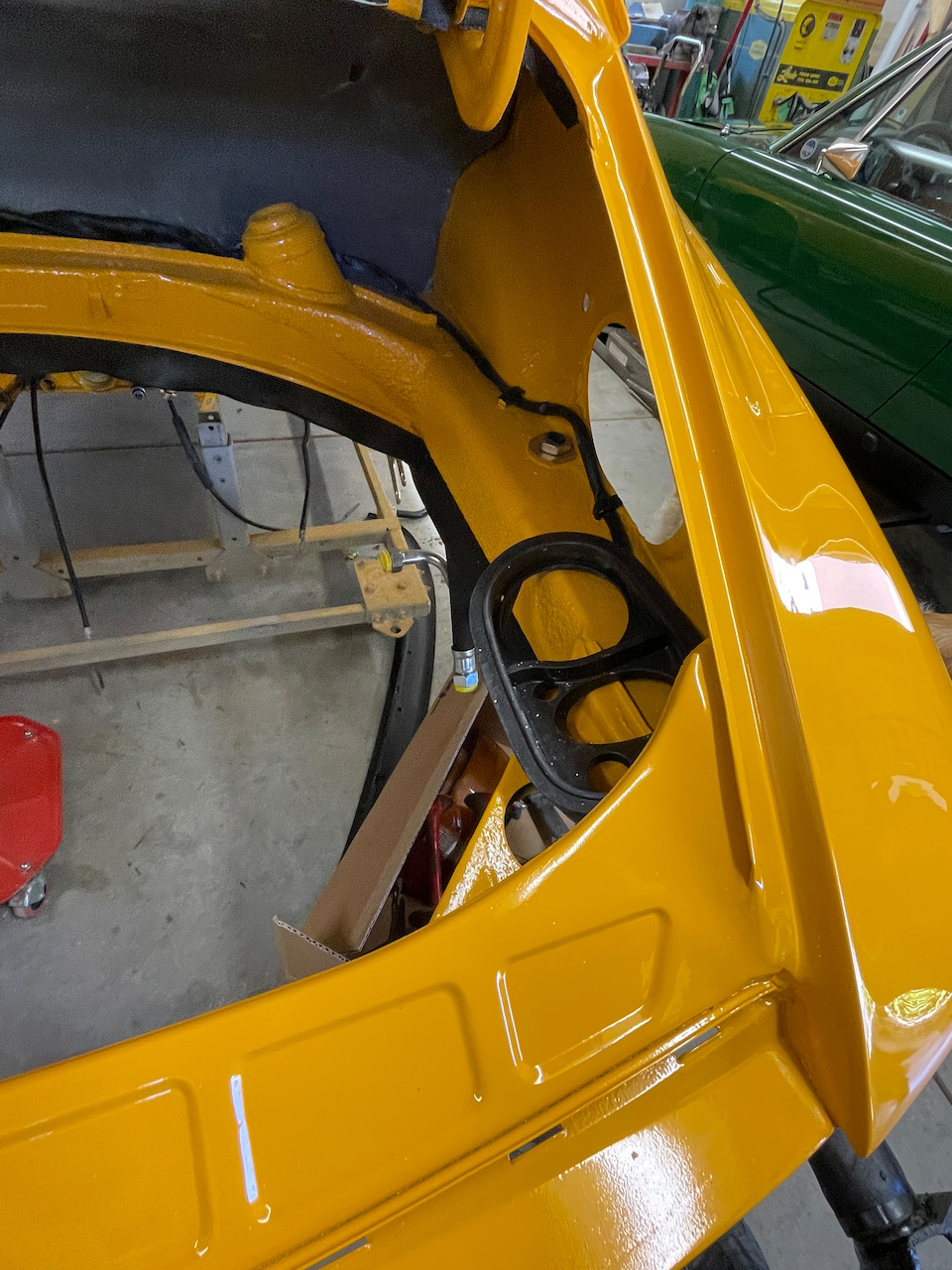 The next time we are at Greg's I want to give the engine compartment a quick detail so it is ready to accept the motor. Then we will do the front trunk as it is pretty dirty too. I think I can install the front bumper and valance at this point too. (IMG:style_emoticons/default/aktion035.gif) |
