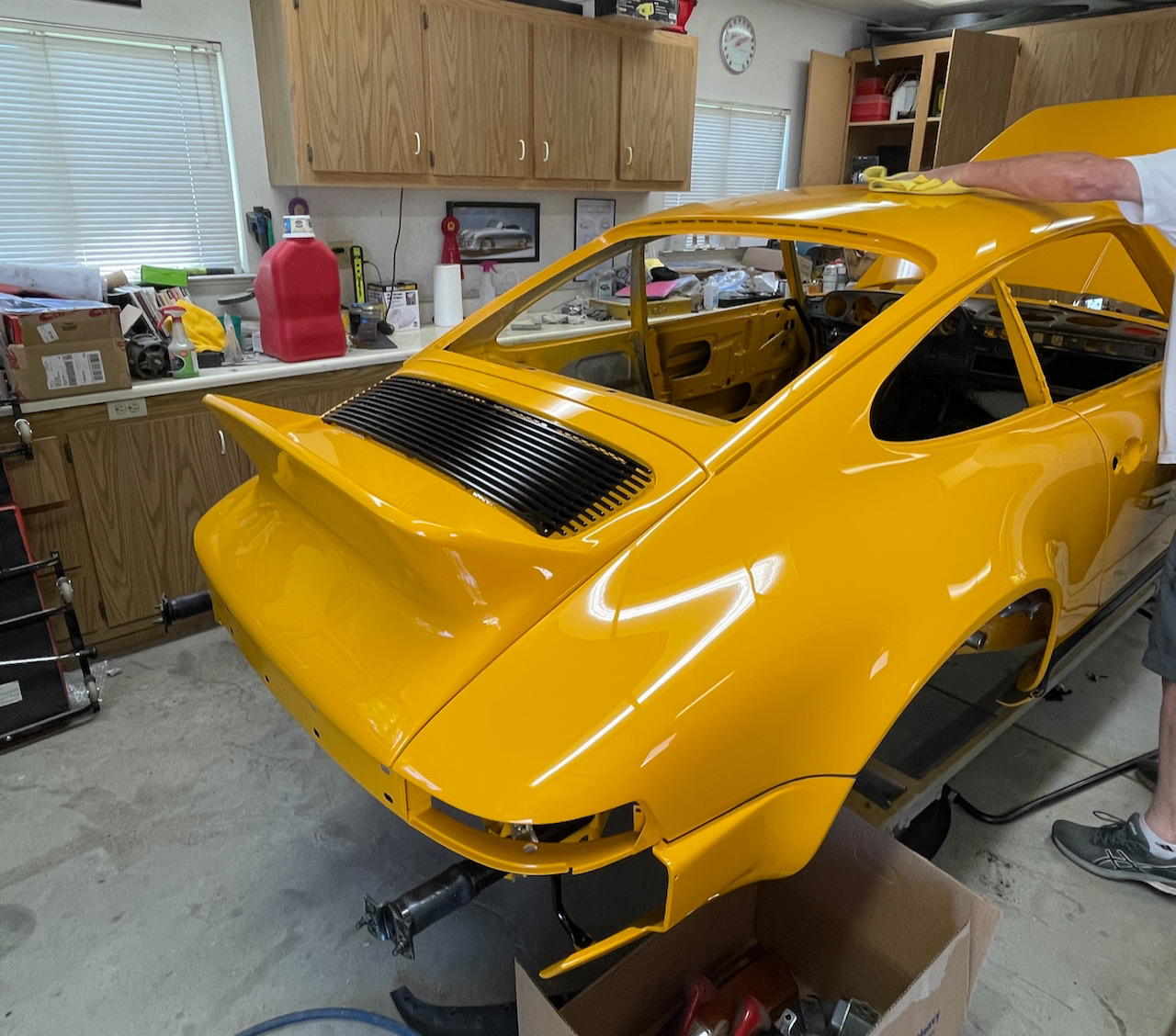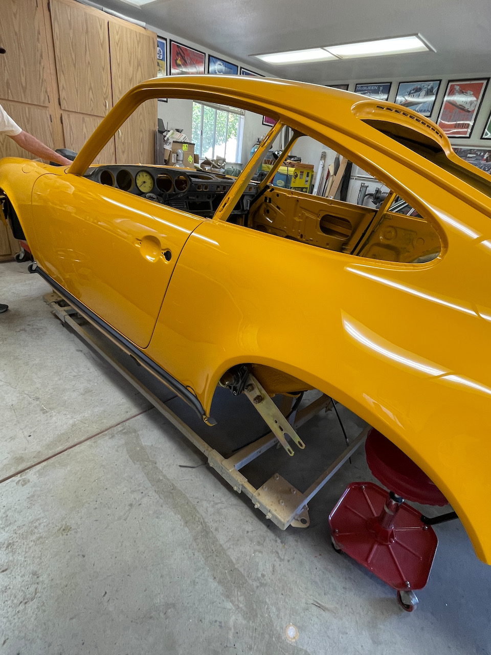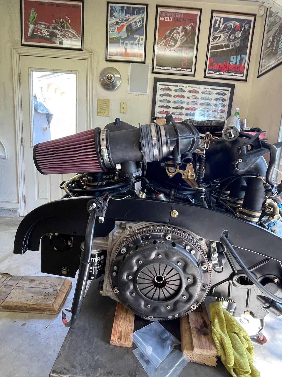 Greg installed the new crank position sensor with the new mounting bracket. Fits nice and looks proper too. Then we installed the MAF sensor, it fits nicely, but I need to order a couple new clamps from RM European to wrap that up. While Greg ran to the dentist I took the opportunity to clean the engine compartment for the eventual motor installation. It was not really bad, but it cleaned up nicely. Now, maybe in a couple weeks the motor will be in its new home. While cleaning the engine compartment I remembered I still had the 3rd brake light flasher module installed that was living in the engine relay board area. I had turned it off about a year ago because Greg's wife saw it flashing when I applied the brakes and said, "Oh, that's annoying". I looked at it and realized she was 100% correct. I had originally bought a flasher module that would flash the 3rd brake light 1-2 times when the brakes were applied and then would not flash every time you applied the brakes if you were sitting in stop/go traffic as that would be really annoying. That module, sadly, was lost and another installed when my car was first reassembled. It flashed the 3rd brake light 5 times per application and did not have a stop/go traffic repeat delay. So now that the engine was out it was the perfect time to remove that module entirely- we did. Then we put the transaxle back where it belongs - with the engine. We replaced the little plastic bits on the clutch fork arm, greased the throw out bearing and it all went together nicely. I was really pleased to see that happen as it means we really are getting close to getting them back in the car. Then for a break in the action, Greg had 2 new 911 door-check pins sitting on his counter. He told me my pins, (plain looking steel with a hole for a pin to secure them) were loose and that was why my doors "clicked" when I opened and closed them. The new 911 pins were installed and my doors are nice and quiet when opening and closing. Sometimes it's the little stuff. My headlight dimmer reostat was not working properly; it was more of an on/off situation. I sourced another early headlight switch and we swapped the old one out and the new one in and now everything works as new. It's not like I dim my dash lights, but it bugged me that the switch was not functioning properly. Next Greg tackled the wiring for my oil cooler fans. We previously installed the Setbrab in-line thermostat for the fans. I wanted the fans to operate automatically - let's face it I am old and don't want to forget having to turn them on when the oil gets hot. But, I also wanted a manual switch to turn them on too. So we repurposed my rear window defroster switch, (the rear defroster did not work anyway) for that function. Greg is a terrific electrician technician (of course) and made this look simple aside from the contortionist positions required to get up under the dash as he is 6'3". Our next tasks will be to sort the engine vacuum lines and hopefully start getting the electrical for the engine figured out so we can get the DME mounted in the car and get the wiring from the dash to the engine done. We also still have to make the idle control valve pipe so we can mount that where we want instead of the stock 993 location. My brother and I are planning on attending the Diablo Region Wash 'n Shine at the Danville Livery (Sycamore and San Ramon Valley Blvd.) on Monday (Holiday). Greg has entered his Willow Green 914-6 GT. If you have not seen that beauty in person- I recommend trying to make it. It is always a well attended function. Now, I mention that event, as I really hope someone with a '95 993 in stock form is there too. We need to look and take pictures to sort my stuff. So I have my fingers crossed! |