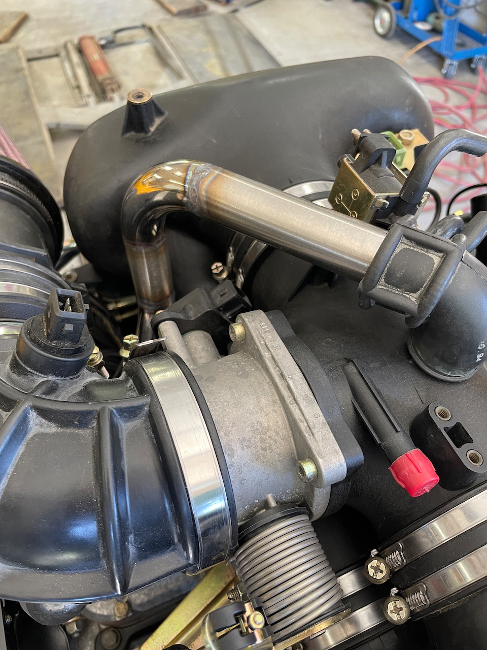@SirAndy - When making the "pipe" we allowed for the crank case breather hose. (IMG:style_emoticons/default/smile.gif). Nice looking out though. (IMG:style_emoticons/default/beerchug.gif)