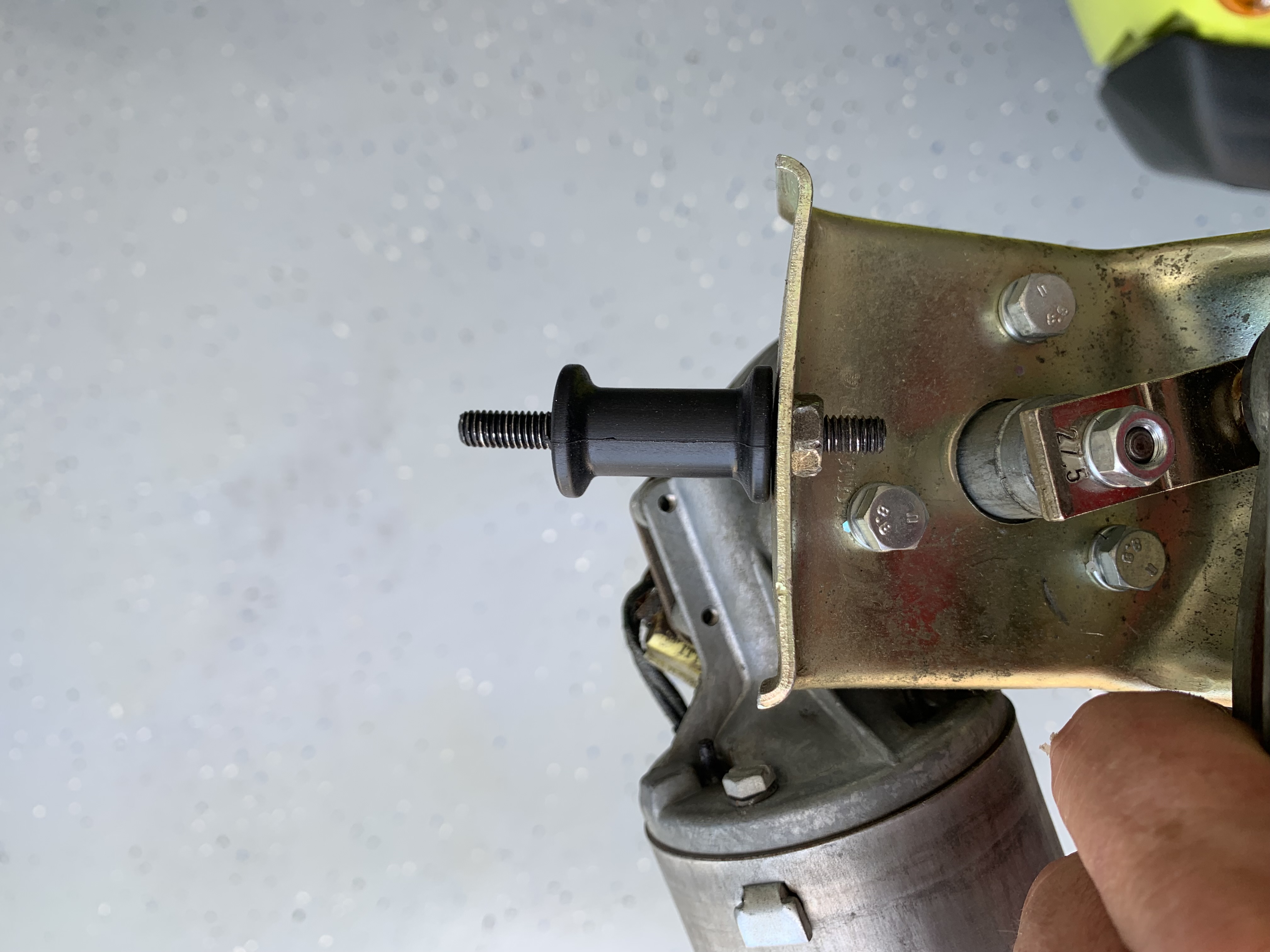 While inspecting the old wiper assembly, I found a lot of wear and play that I didn’t like. So I’m swapping in a nice backup wiper motor assembly I had on the shelf. I have a new rubber isolator from 914 Rubber to replace the one that has basically disintegrated. The one end of the old isolator came off easy but the other end that attaches to the car is stumping me. How do I get that thing out? |