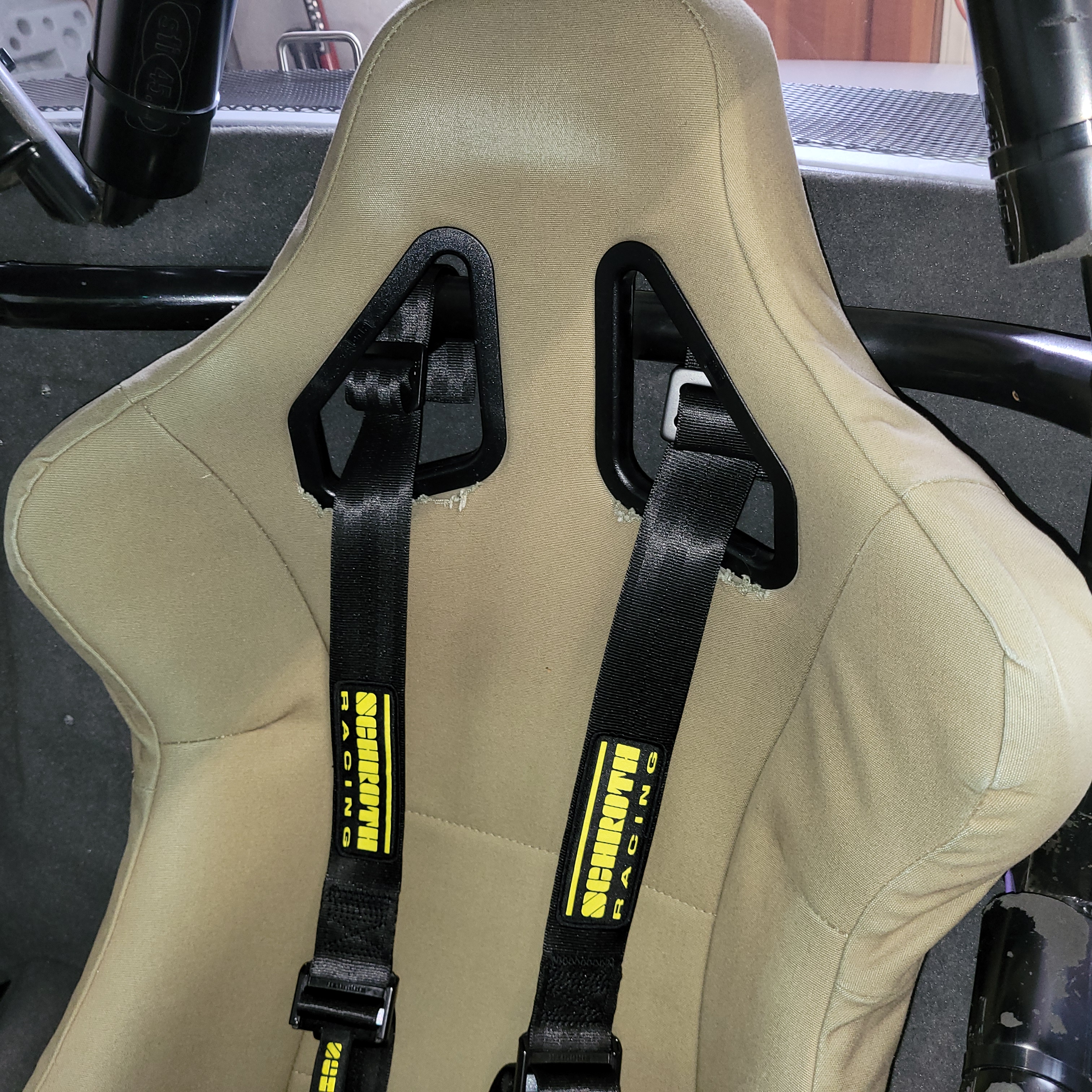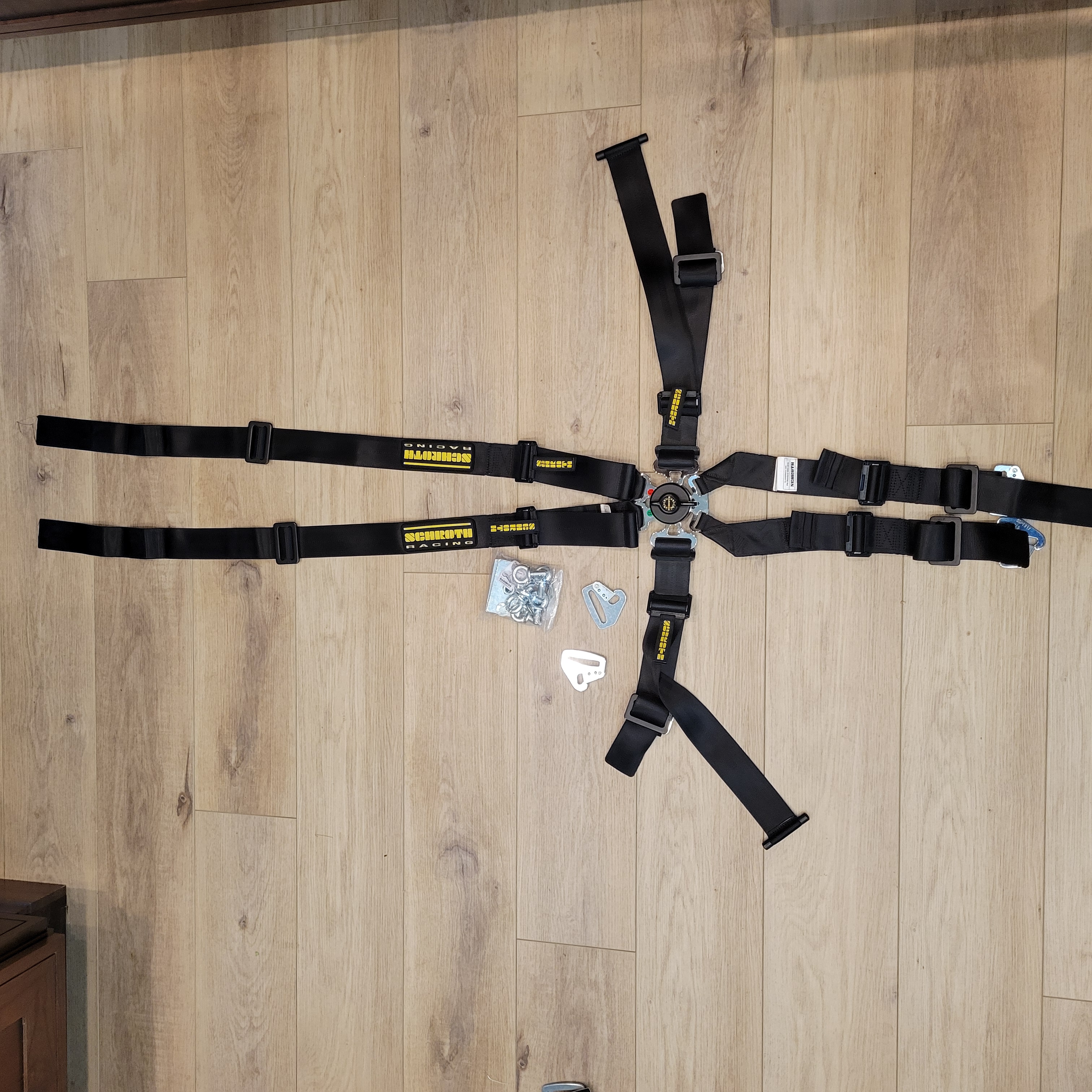 It pains me to have to replace these every 5 years. This time new Schroth replacements were $1200! Not a whole lot of use on these. They look like new! Lost a season due to covid. The stickers are still on the receivers. Car is always in the garage when not on the track. Comes with all new mounting hardware, directions and a sticker! I mount the shoulder straps by wrapping he the roll cage behind the seat in my 914. I say this because I trimmed the shoulder straps so they are not hanging two feet down.