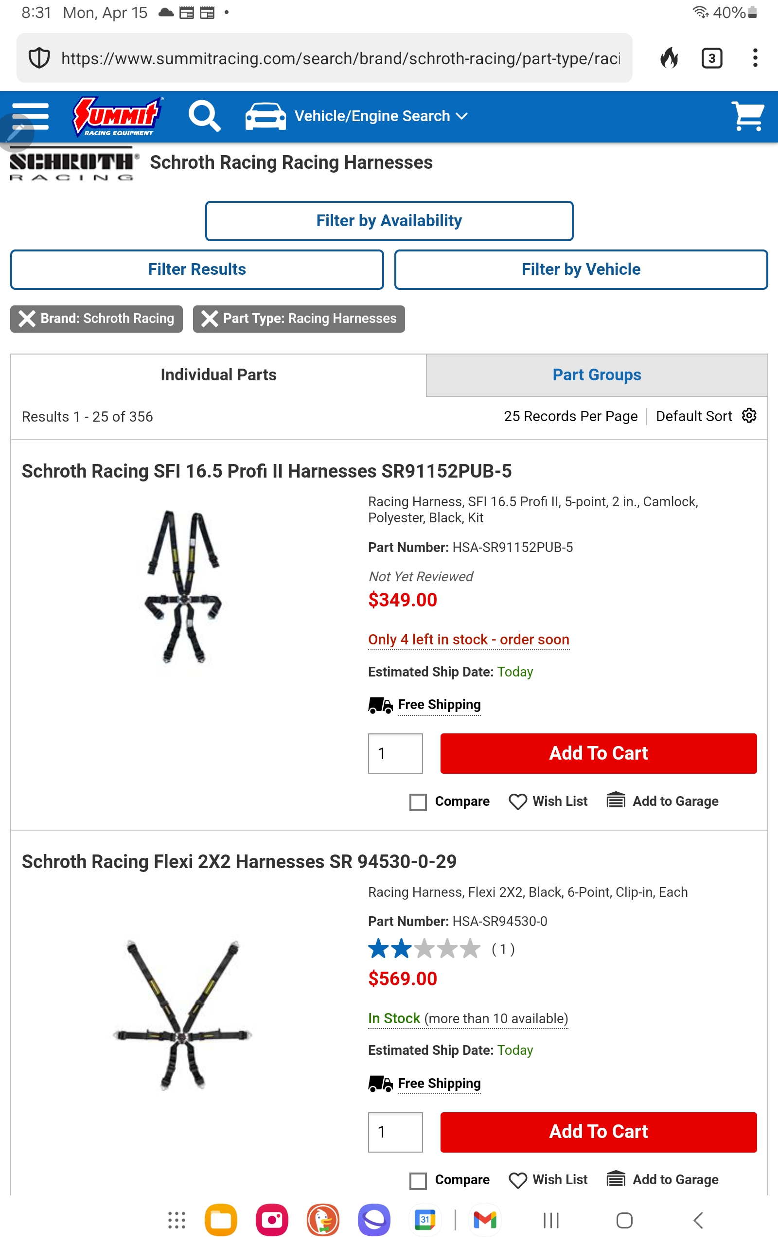 This time new Schroth replacements were $1200! Where in the heck are you paying $1200 for Schroth FIA harnesses?? Are they gold-plated? The vast majority of Schroth race harnesses that we use in our race cars are in the $350-$570 range. At the risk of coming across as rude - not intended - these belts are not usable with any race organization. They'd be OK for track lapping days, but those are generally done in street cars so will not likely have the proper mounting points to install them. I suggest $350 for these expired belts is excessive. I usually donate mine to anyone that wants them for the shipping costs and a return shipment of a 6-pack of good local IPA... If you can find someone to re-string 'em, give it a shot. But they'll probably only carry SFI certification, which is only good for 2 years (not saying they cannot be re-certified to FIA for five years, but I've not pursued finding someone, I just replace 'em. And eff SFI and their two years, buy FIA for five). Let me know what you're looking for in harnesses and I can help. Or start here: https://www.summitracing.com/search/brand/s...acing-harnesses |