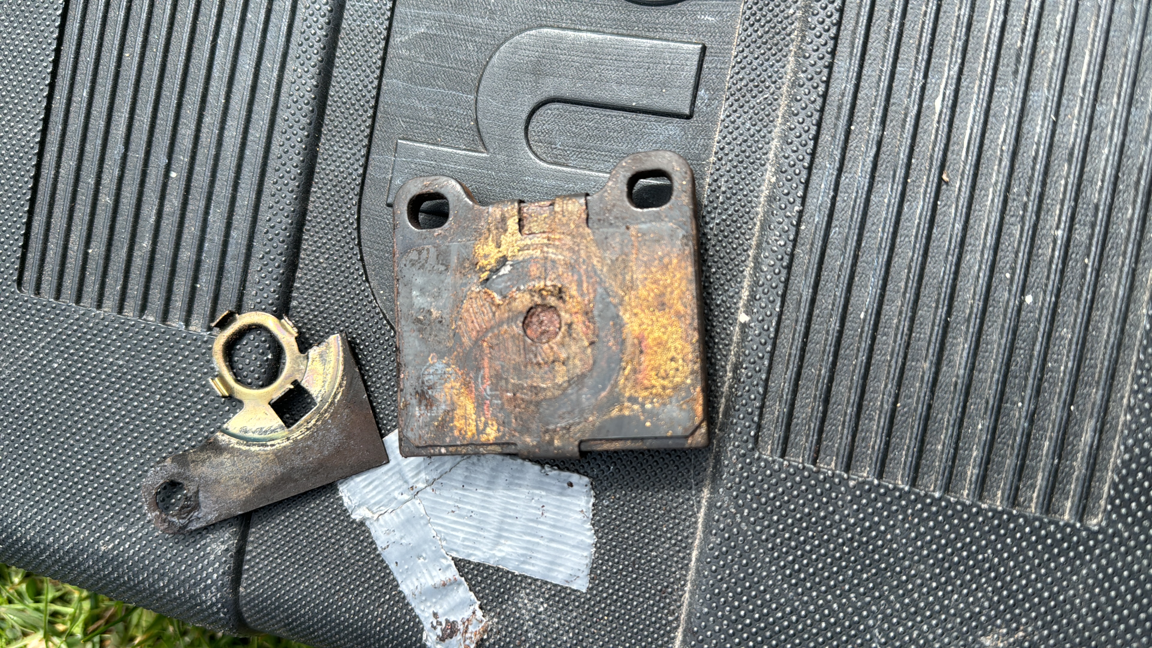 [/quote] The triangle clips go on the front calipers. The caliper in your picture is a rear caliper... No clips on the rear, since the piston can rotate a bit with parking brake mechanism... The front pistons need to be oriented (or should be oriented) a certain way to concentrate the pressure on the trailing end of the pad in an effort to reduce pad chatter and noise. Ironically, the angle on these clips is not exactly the 20° that Ate calls out in their literature, but it doesn't really matter, as long as they're close and all 4 pistons mirror each other's position. The clip doesn't need to be there once the position is set. In order to reduce leading edge bite and control noise on the rear pads, Ate originally ground the pads on a slight angle....one end was about .5mm thicker than the other...which is why you see the 2 different sized pins, and the 2 different sized holes in the pads. The rear pads available today are the standard D30 pad shape and have 2 of the same sized holes....and are not ground on a taper. Noise is typically not a concern with modern friction materials, but you still have to drill out one hole in each pad or buy a set of PMB's new hardware kit that has skinny pins for all 4 positions. [/quote] OK, thanks. I messaged PMB and they explained the clips were there to ensure they are clocked properly but that they do this during the rebuild so the clips aren't needed. Thanks for explaining why though. All makes sense. Cheers Chris |