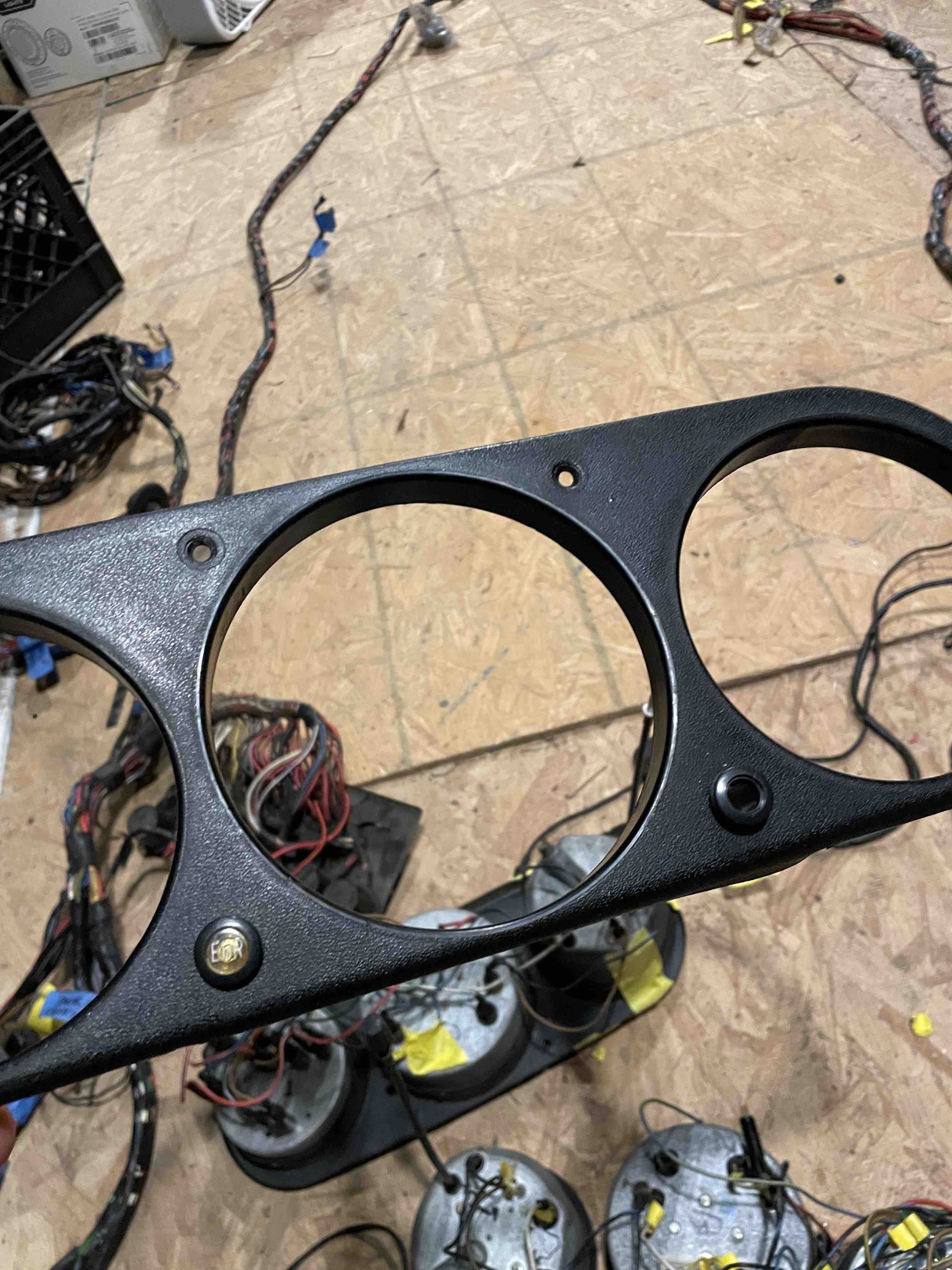 This has a small mental female blade connector and goes back to the white cylinder connector behind the firewall. under the dash near the Gagues, where does this connect to? Not on the diagram Last 3 pics of Bezel: also the two lights on the instrument gauge bezel I am missing 1 of them but what do they mean and what's the one I am missing? Basically, what are these and what do I label them? Thanks! Frances Attached thumbnail(s) |