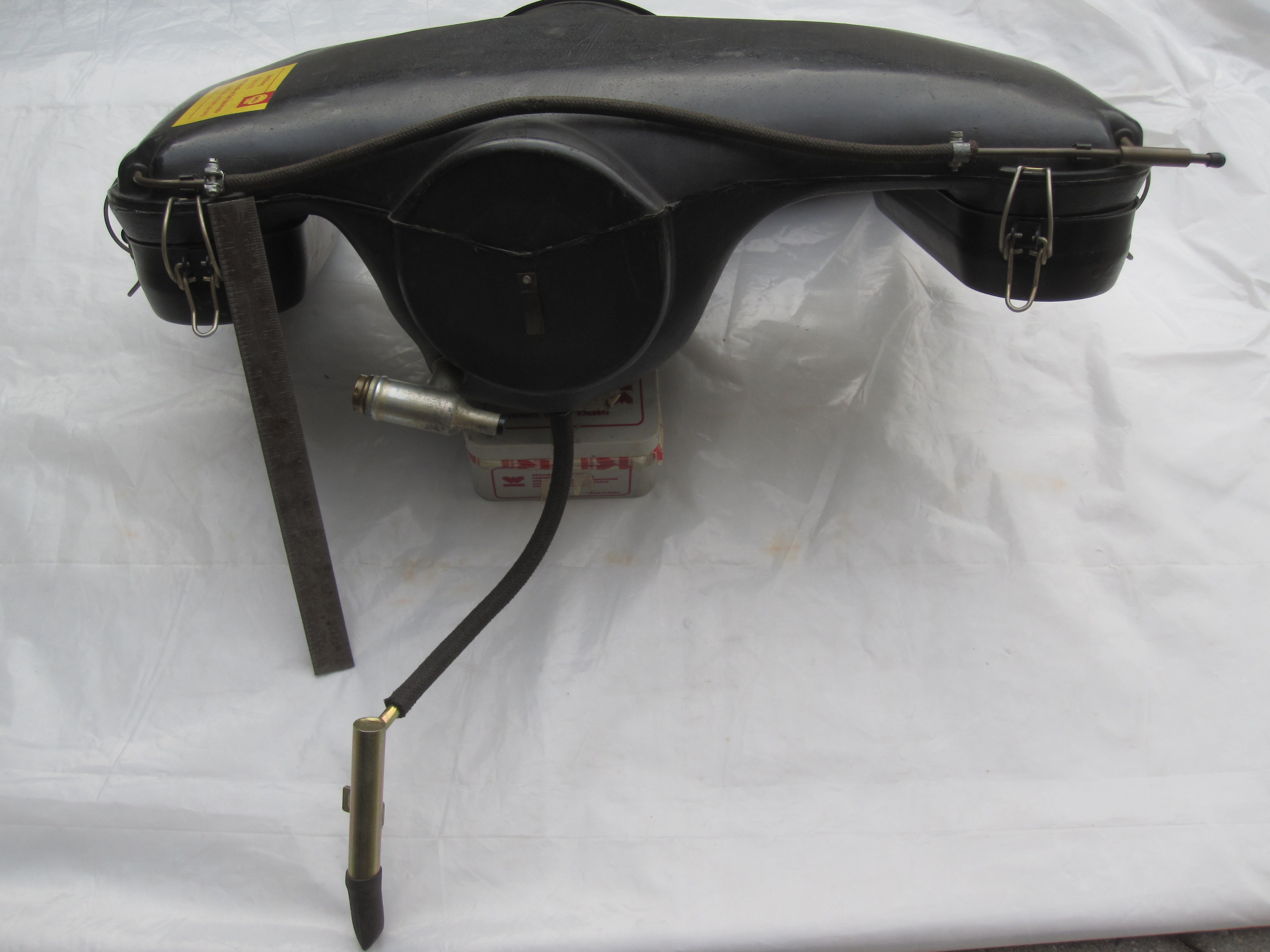 I agree the clip on the back was to secure the cold start cross connection hose. See below. Also note on this box the what I think are correct cold start hose clamps. And also the plug in my vent fitting appears to match perfectly with the one Rory shows. Also see the same height walls on the plastic compatible buckets. These buckets work on carbs and the mag stack MFI as shown in the other photo. The one other piece of obscure minutiae is the inclusion of the “fire screen” in the vent fitting that is pictured below on what I believe is a 911 MFI plastic box. And seems to appear on the six box Rory shows. This screen is not there on my six box? Maybe just missing. By the way, the six box and this 911 MFI box are identical. Only the snorkels are different. There certainly are 911 plastic boxes with slight variations (indentations on the bottom) but the basic boxes are identical in shape form and ( I suspect) function. Oh and found the link to this very comprehensive discussion on Early S Registry. https://www.early911sregistry.org/forums/sh...rious-MFI-years |