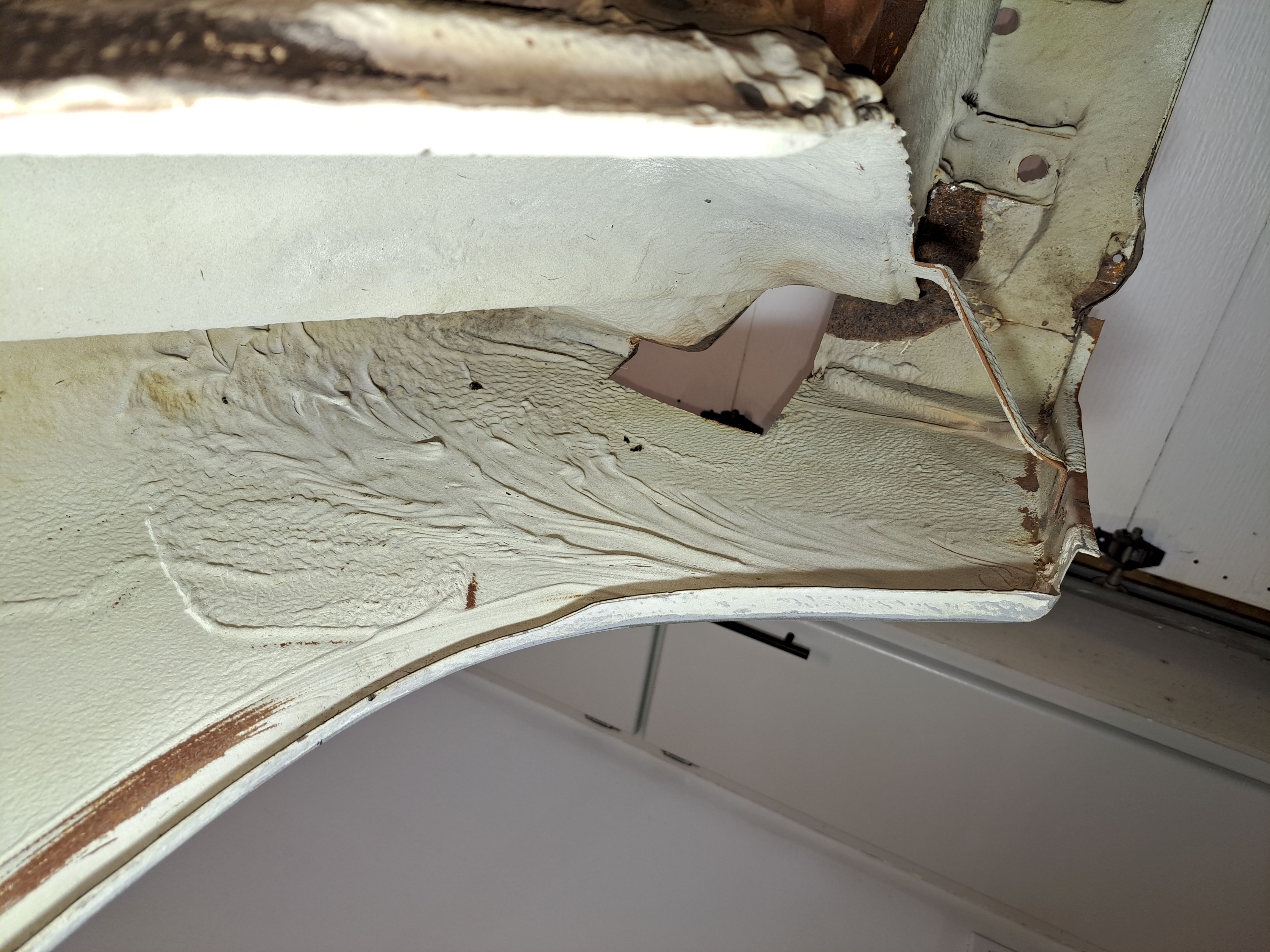 In a previous post I showed some of the undercoating that I removed from my 71 original six. The patch that was removed and shown in that post was in an area that the undercoating was applied fairly evenly. I wanted to show other areas that it was very poorly applied but did not know how to add pictures to that post, so I am putting them in this one. Anyone seen undercoating applied this poorly on a 914?