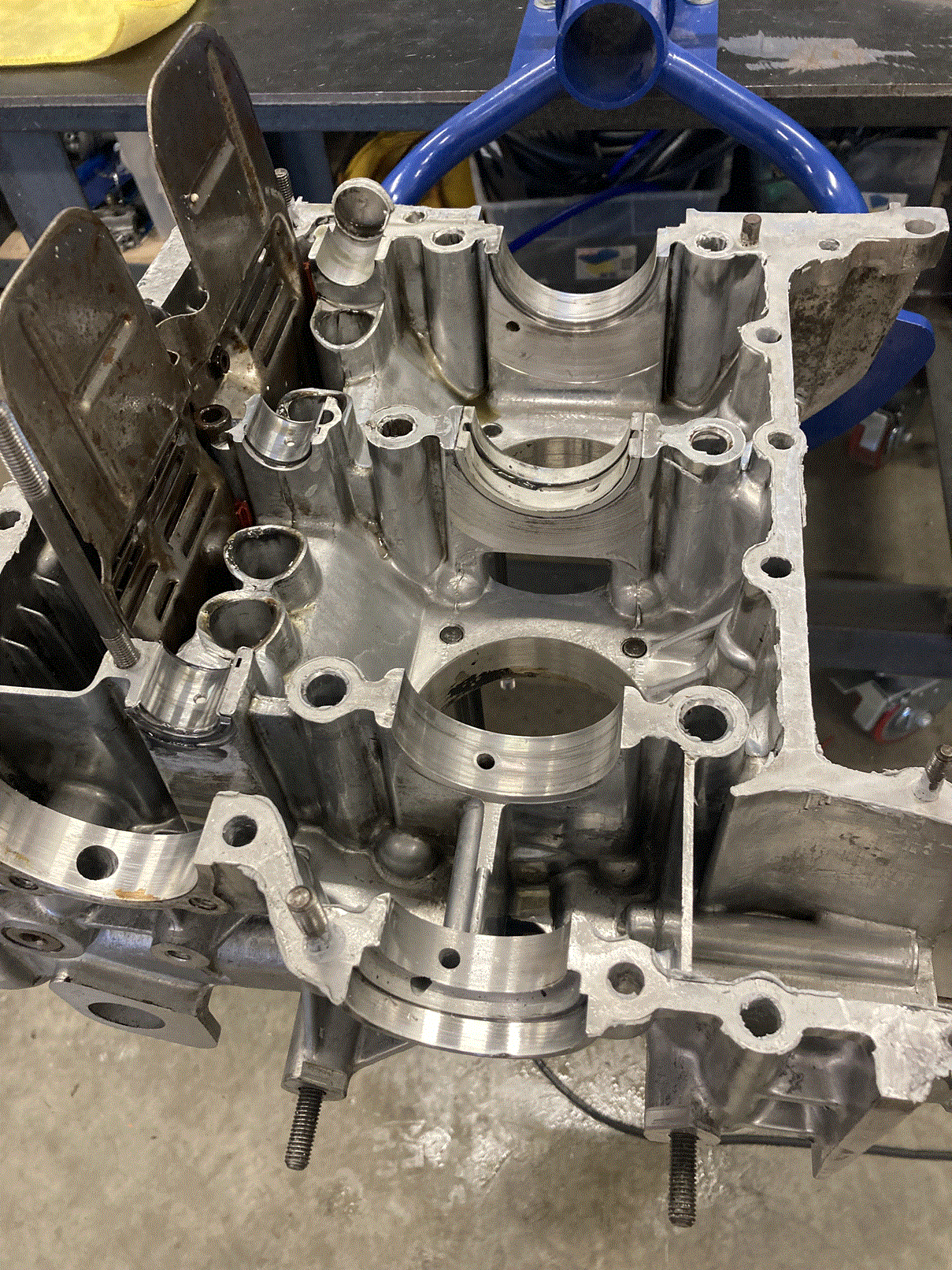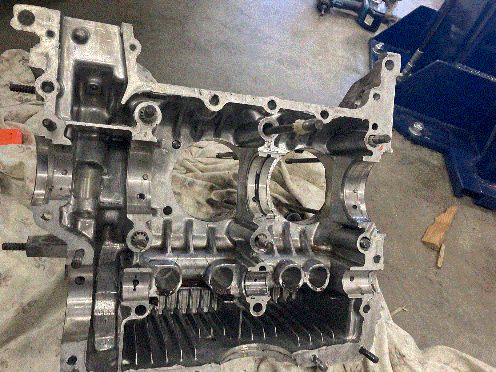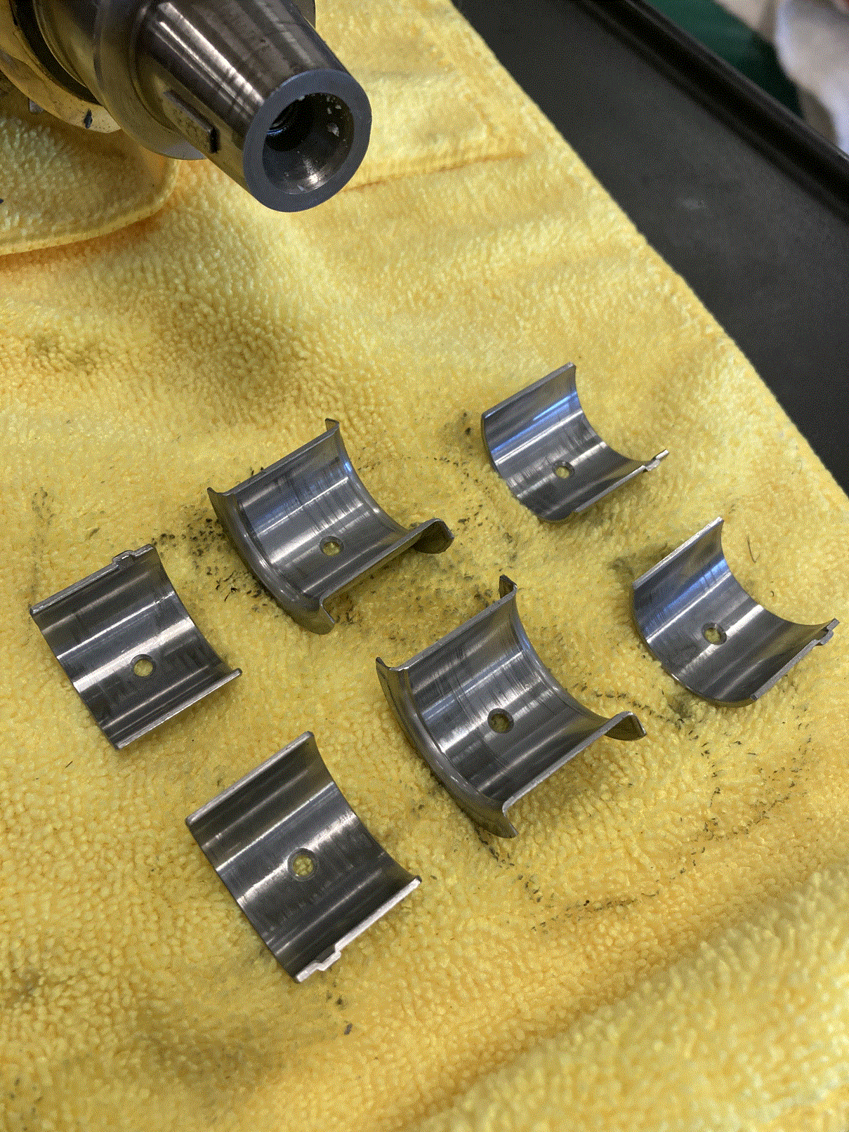 As an alternative you can check the split main bearing with Plastigage and if that is good, maybe feel safer that rods are OK? Cam bearings seem to just have had the tin protective plating wiped off based on appearance. Again, those can be measured with Platigage if there is any question on clearance. The issue is that now is the time to be 100% sure. It would be a waste to have done all this, start the engine, hear a rod knocking and then have to tear down. Agree - not likely, but at this stage it’s easy to be sure. Case doesn’t appear to be clearanced to me. Those grind marks at lifter bores are typical of casting flash clean up. Just mockup and make sure you have clearance to all rotating / moving parts (crank, cam, rods, lifters). Note: don’t assume oil galleys were previously cleaned or that hot tanking will clean them. Galley brushes and brake cleaner until you are sure they are clean. |