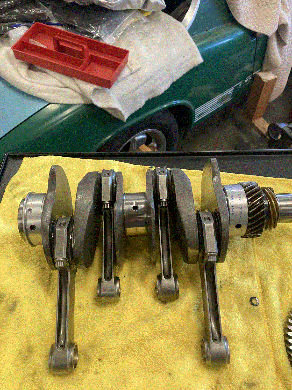 Plan to send case to a machine shop today for hot tanking to get really clean. When back I'll start trial assembly and measure how crank/cam fit. Will watch Jake and Ian's videos again first. Was considering not taking the rods off the crank. Just check torque on rod caps, clean up with brake cleaner and then insert lots of oil. Or, I could take the rods off and do a thorough cleaning of all oil passages and reassemble. Do the cam bearings look usable?