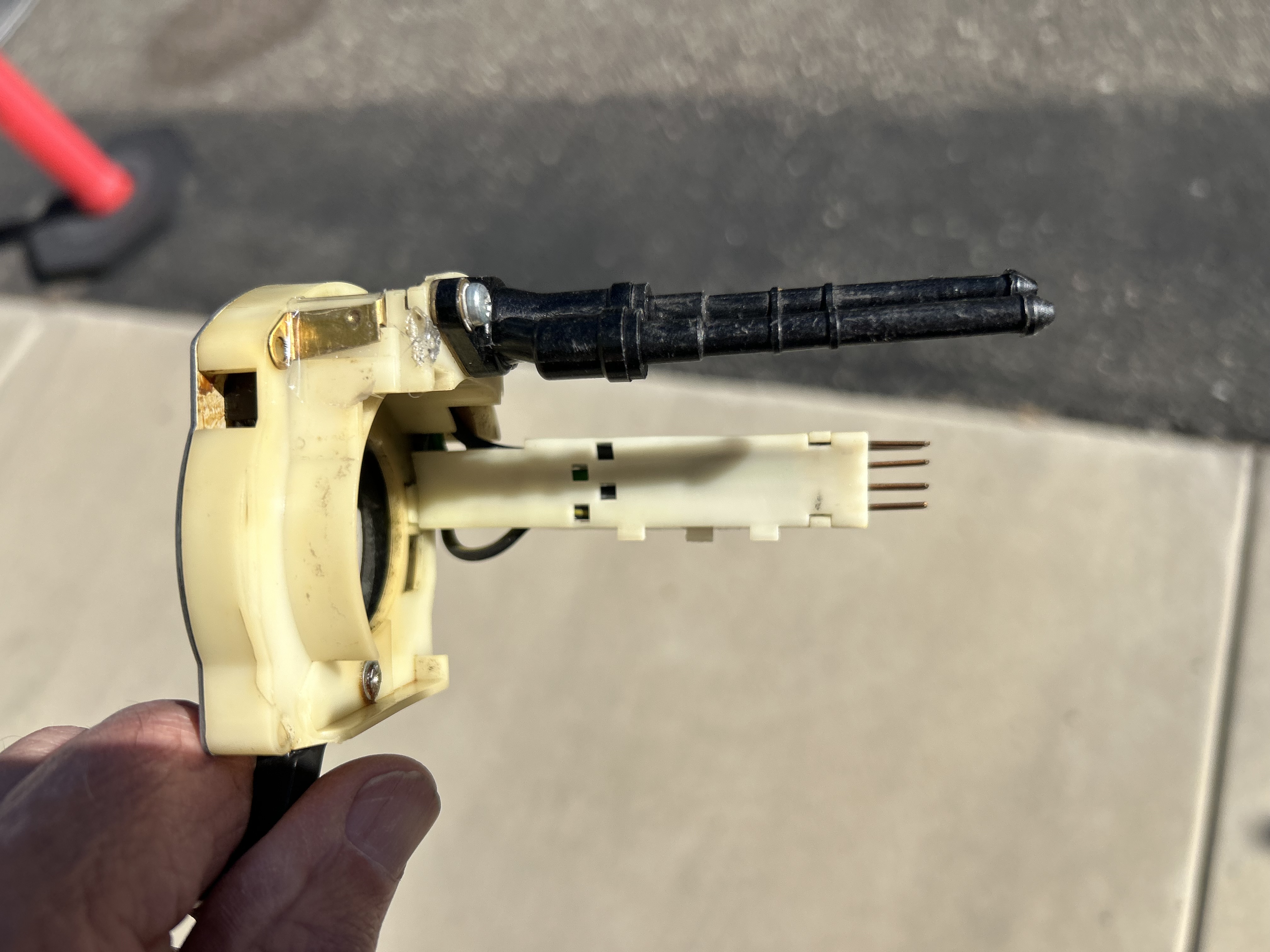 When I received a replacement wiper switch there was a small brass tab held by a small nut and bolt in the hole where the upper left screw holding the switch to the steering column would go. Since the switch I removed did not have such a tab and since the tab blocked a mounting hole I removed it. The switch without the tab did not function properly and also seemed to adversely impact the function of the turn signal switch. Since then I have read that the brass tab is needed for proper grounding. Here's my question: How in the heck do you mount the switch in the steering wheel without having the little brass tab repeatedly fall off. What should have been a quick easy job has become a never-ending saga!