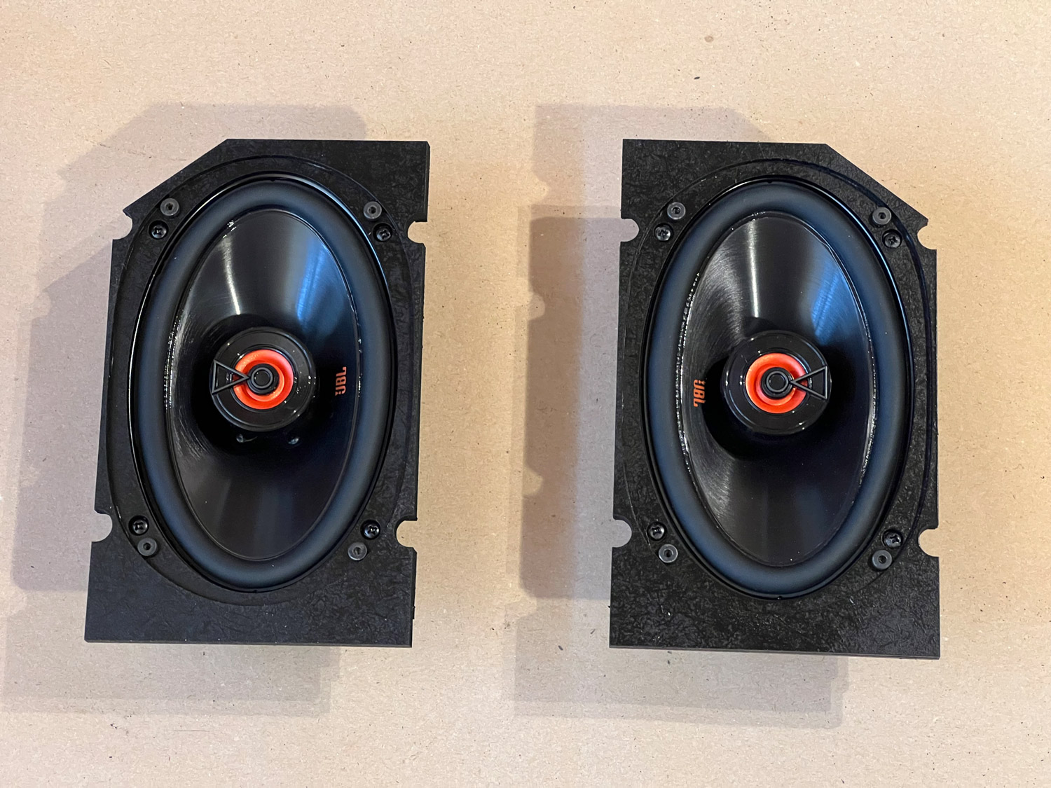 I have done a few of these speaker mods in factory enclosers over the years and your solution it very good. The 6x9 sound with built in tweeter is the answer for the stock encloser and with a sub it should so rock hard. Some one should sell the custom adapter plates – laser cut MDF/ On my 6 I had PMB make up the adapters to fit my 6 but the sound is good but I believe your 6x9 will but out decent bass as compared to my Polk Audio with 4 inch bass and tweeter. I have a subwoofer, and the sounds kicks but I think the sound of your set up is what most people will want. Picture of my Polk Audi: Don’t mind the dust, there were installed as clean as a whistle Best Bob B ![]() ![]() |