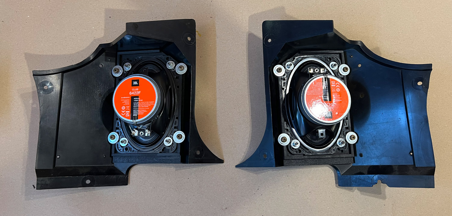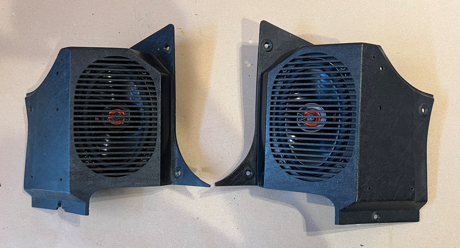 I wanted to set of speakers in the factory pods, without hacking anything up, hoping for a little better sound than the 50-year-old paper, torn speakers.