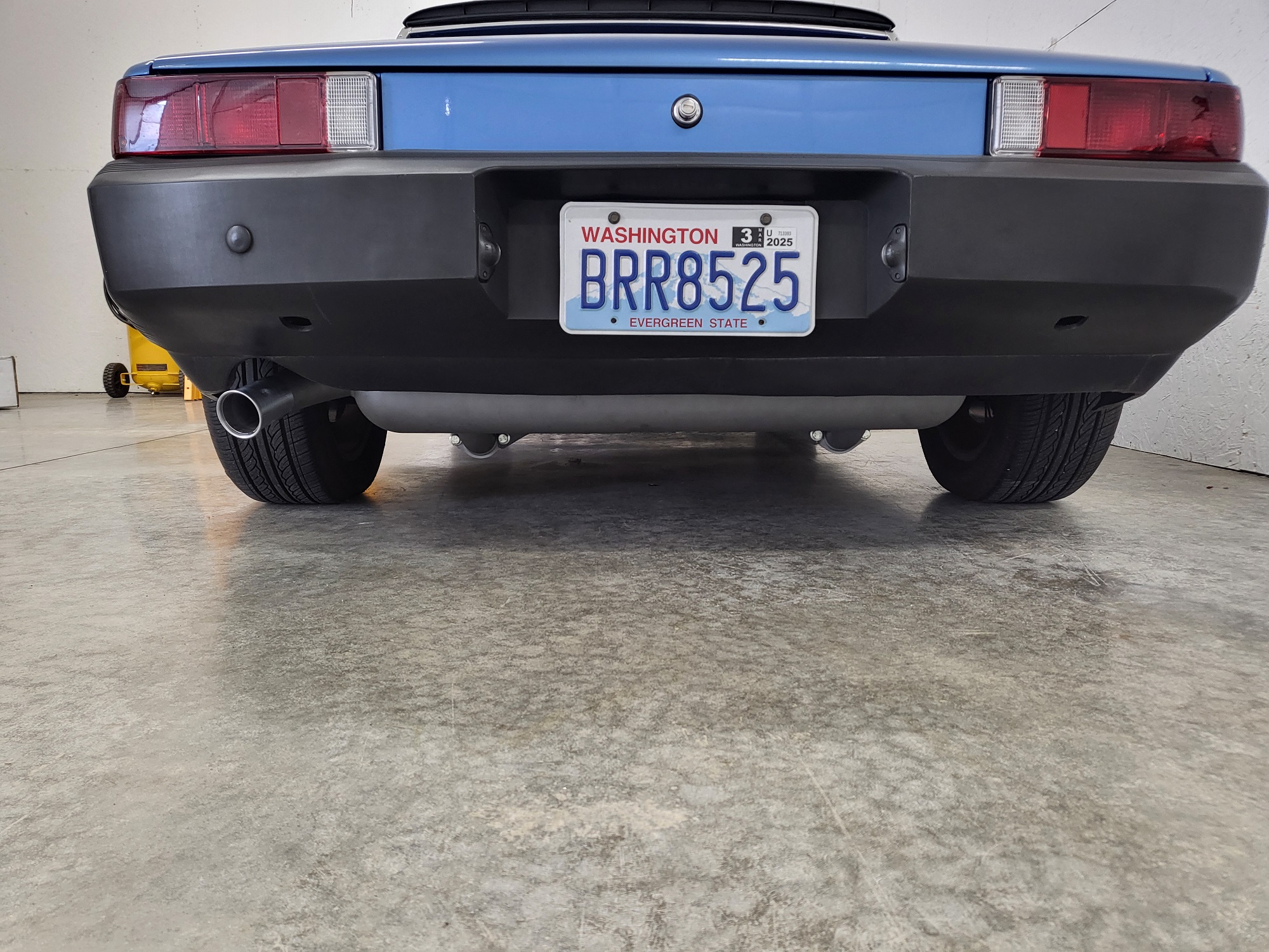 I remember having an old factory Leistritz on my 2.2 six conversion initially, which was quiet until a giant hole blew out of it. But it was a little too quiet for me (and this as someone who doesn't love loud cars on the street anymore), and more importantly with too "normal" a note for an occasional use toy. I replaced it with a two-pipe sport muffler from Patrick Motorsports as a placeholder while I reviewed the two-pipe SS options out there, several of which looked appealing but seemed like high risk if you didn't like them. Turns out, the PM muffler is just about perfect for my needs. I do need to get around to having it professionally coated, however... I sure do like the single-pipe look on your car. Understated, and cool—as if that's how a 914-6 would have looked in 1975-1976 had they still been making them. |