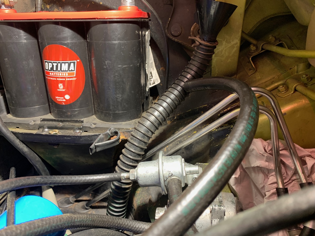 Based on community knowledge gathered in a previous post it turns out the PO of my 73 2.0 had the supply and return lines reversed underneath. I now have ALL NEW hoses AND the correct fuel filter AND a reducer pipe from Tangerine, but want to make sure I am right before I start cutting the lines.