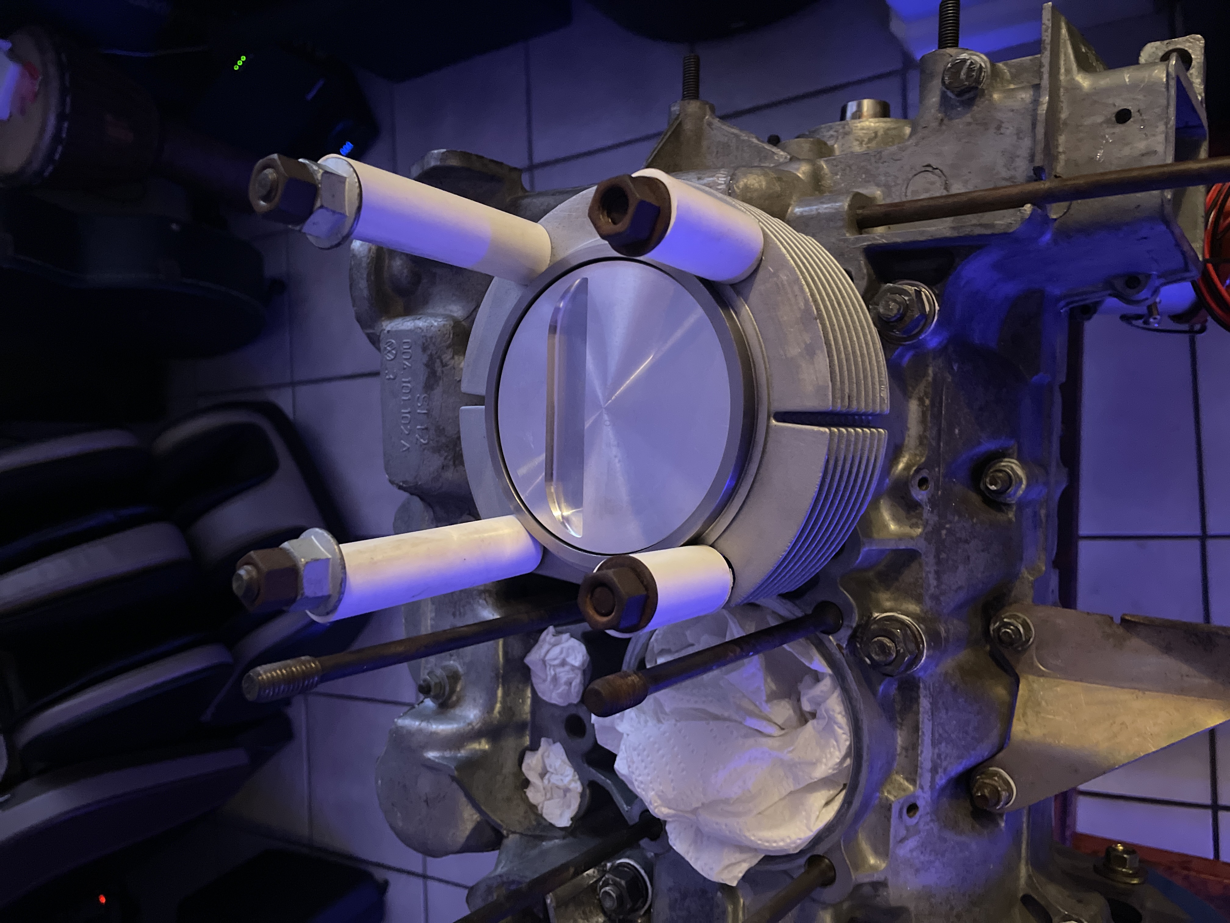 Thanks for the replies! I did cc the heads and all 4 were 59-60cc. I haven’t cc the valve pockets yet, but I would agree they are by looks alone probably a little more than the stated 3cc. On the first reply it was stated that by adding a base shim of .013 that would get me to the needed .040, but wouldn’t a shim add space instead of subtracting it? I will add the water back into the head and remove the 6cc, mark the line on the valve pocket at the waters crest and have it cut down to that line. That should ballpark me into the right area. I had the case checked at a local machine shop that did the crank polish, flywheel turn, and case cleaning, and they said the journals and the deck were still within parameters. It is a virgin case with 93,000 miles on it. I will definitely measure and check the deck height on all of the cylinders before preceding, just wanted to understand the process fully at this juncture before going any further. Thanks again for your valuable time, Chad Du'h... you're RIGHT! Stupid Ninja! You need to remove .013" from either the top of the jugs OR the jug registers on the case. NEVER/NEVER completely trust the machine shop. Ian Karr (lots of good videos) had one to the few VW air-cooled specialist machine shops still in business do the machine work in his Bumble Bee. They BOTCHED the line boring on the case. He had to "do" the engine twice on that car! The case registers in your pictures show ZERO machine work (they are still dirty). Minimum I would do (to verify these are flat) would be to remove the head studs, get a small piece of glass, cover it in 1000 grit wet/dry sandpaper, and "lap" the registers with WD/40 as my "cutting fluid". I'd want to see nice clean aluminum all the way around the registers. I'd test the surface with either Dykem blue die or a black sharpie. Lightly coat the surfaces and hit it with the glass/sandpaper lightly. You WILL be able to see any low spots this way. For the reason why check out this video. https://www.youtube.com/watch?v=siPS_EBLxLY Not much different from doctors, lawyers, you name it |