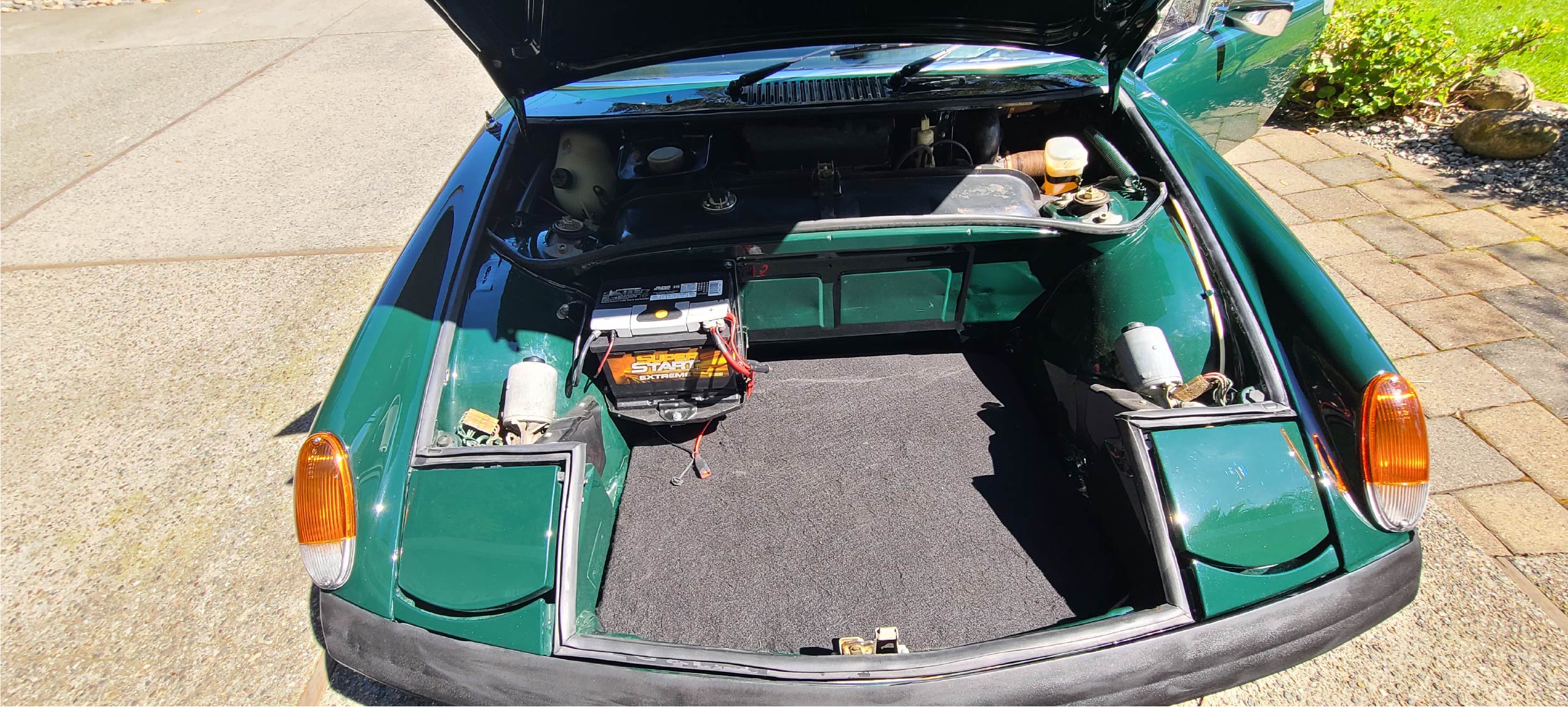 It's time to move on from my '74 914 LE (although there's not much Creamsicle left). Car is a big 4, straight and very clean, other than a little surface rust in the rear of the rear trunk. To my knowledge, the repaint was done in the early 90's with the car taken to bare metal and finished in a custom color that I've called "Irish-ish". It's a similar tone to Irish Green, but a few shades darker & does some pretty cool shifting in different light. Paint is still in excellent condition, but could probably benefit from a correction, in my opinion.
