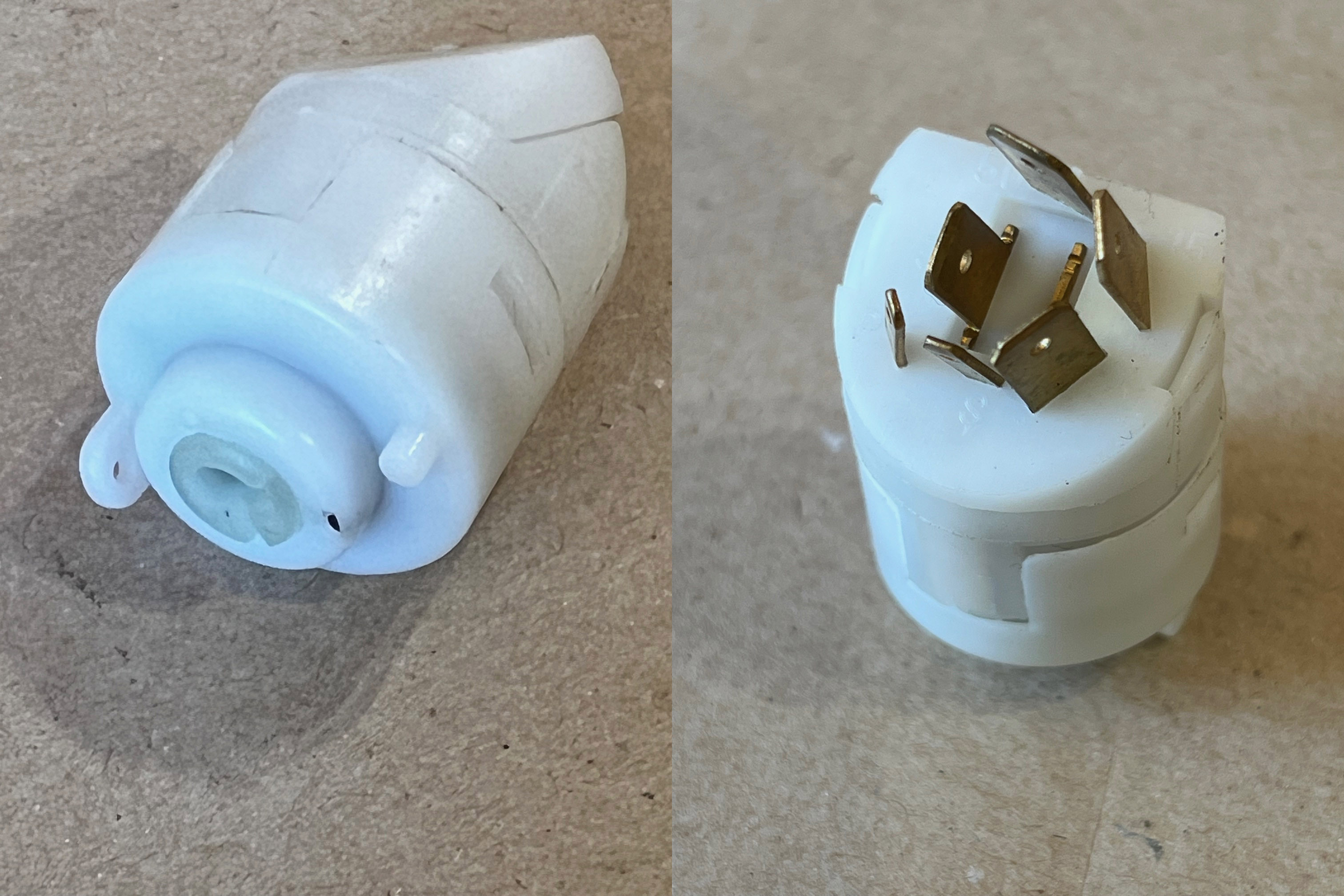 I have another problem I’ve been chasing. 1975 ign switch. The key/lock end that goes into the electrical part of the switch is worn. I might be inclined to put about 1 tiny drop of 5 min JB weld on the tip just before you slide it into the “key” of the ignition switch housing. That would be enough to take out whatever wear and slop is in there. The end that you’re saying is worn can be separated from the ignition cylinder housing with some work. Could also replace just that “key” tip piece if it’s that worn. Disclaimer: I have never tried the JB Weld fix myself. Would need very very little drop of it and ensure that it doesn’t get enough in the rotating part of the ignition switch housing to “glue” anything else in there together. |