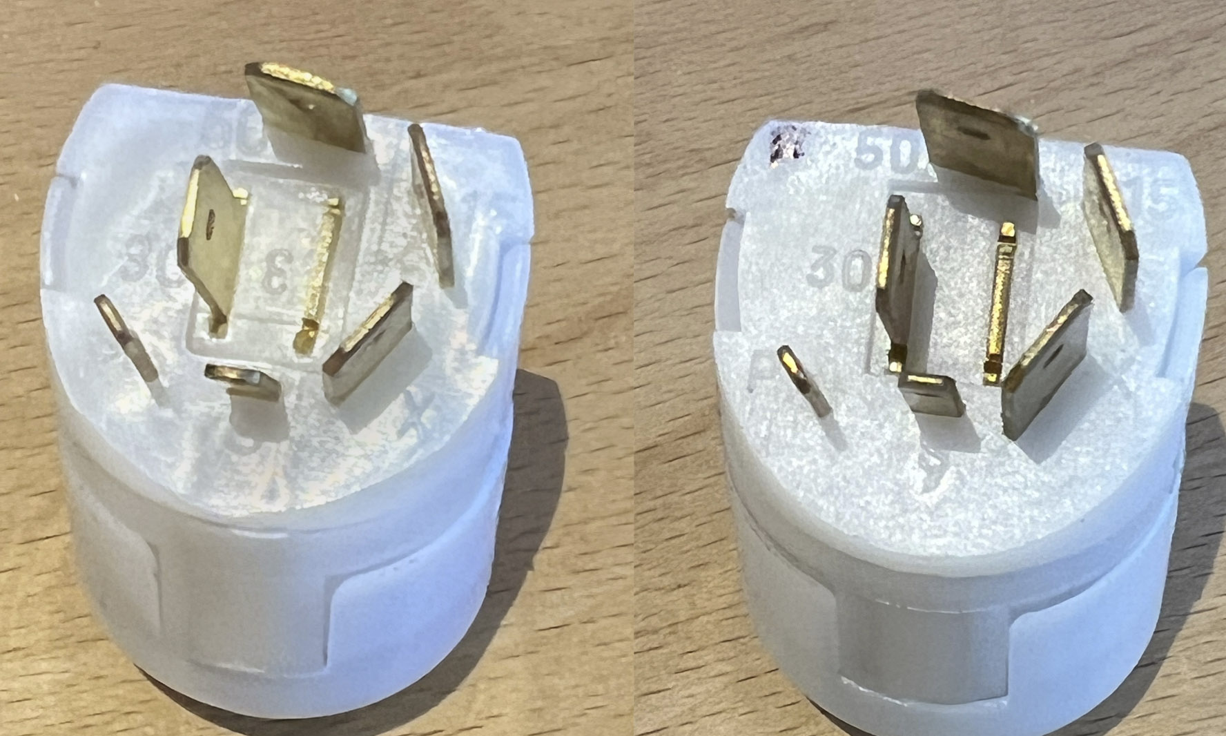 so one difference that I see is that the top picture the back pin on the bottom, sticks out further on the Partworks one than the Chinese made Porsche part, I would be inclined to use the Partworks one first. Not sure iif that length of that black contact pin will matter or not, ..... Phil You takling about this guy? That's not a contact pin, that looks like where the the end of the spring inside is captured. True the spring end does stick out a tiny bit (about 0.9mm) on the Partworks part, where on the Porsche part it is inside a bit. Now that you mention it, however, the large 6.3mm contacts 50, 15 and X are about 1.3 mm longer on the Porsche part than on the Partworks part. The rest are more or less the same length on both. Don't think that really matters though. Ok, you're probably right, not of concern. |