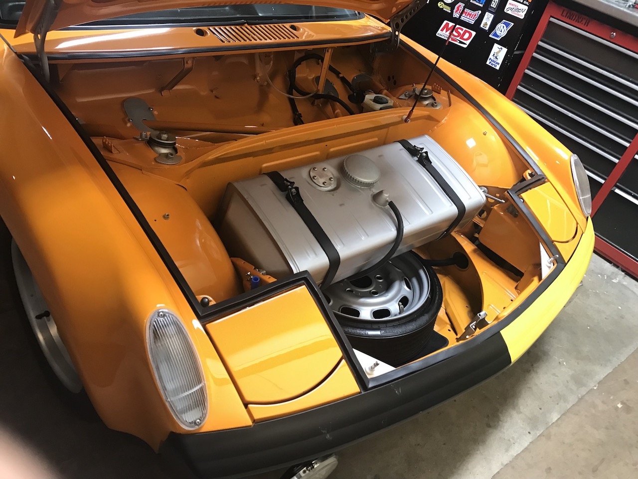 Why do you have a 356 fuel tank in your 914?????? Hi Clay, 30 years ago when some of the work on my old 74 914 I was planing on a fuel cell and do more track time. Six years ago when the 914 came out of a 29 year nap the fuel cell.....full racing was out. So, you can see the extended cage to the suspension points and the forward placement of a gas tank was needed....356. Best, Mark |