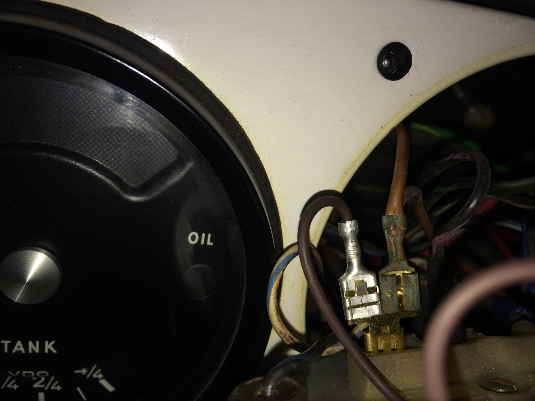 @Spoke If I remove the flasher relay, the indicators do not come on with the key. With the flasher relay installed, I get power on the blue/white wire to both indicators. Also, disconnecting the turn signal switch didn't make any difference. Thanks. George I would expect the indicators to be off with the relay removed. Quite honestly, I'd bypass the K/C/C2 pin on the relay and just ground the common connection of the indicators to the tach ground. I did this on my '71. I'm still using the OEM flasher with all LEDs with no issues. If you do change to external LEDs the function of K/C/C2 is lost. K/C/C2 is active in the relays as a safety feature to alert the driver of a burned exterior turnsignal bulb. If a bulb is burned out, the relay will not power K/C/C2 during flashing and both indicators will flash together indicating a burned bulb. An easy workaround which I did on my 914 is to remove the common wire at the indicators and tape them off. Then make a pigtail like shown below. The piggyback connector goes under the tach ground (brown wire) and the 2 female spades go to each indicator. The indicators will flash opposite (L on for right turnsignal; R on for lefts). This is easily fixed by pulling the entire light assembly out and put it in the opposite hole. Here's spades for the mod. This is the ground piggyback connector. You need 1 of these. Piggyback Spade This is for the bulb spades. You'll need 2. Female Spade Attached thumbnail(s) |