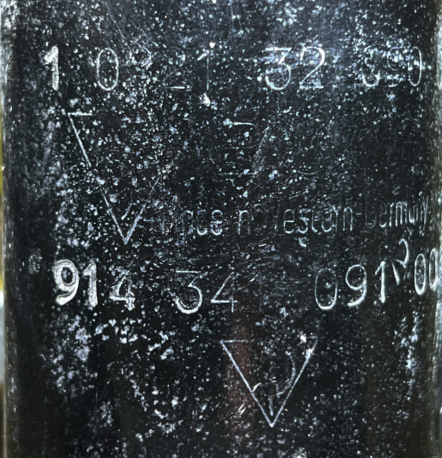 If the struts have been switched out, you need to figure out if they are Boge, Bilstein or Koni ... So the first step is to figure out what you have so you can decide on the best solution. It looks like the strut uses an early pinch bolt (large nut securing the bolt, split between the ends that secure the ball joint). If that’s correct, they are probably early 911T struts and probably Boge. Boge struts will have an embossed area halfway up the body with Boge name and part number OK, so the first thing I did was look for the part number on the struts - which was more or less where you said it should be, but of course facing outward. So I pulled the front wheels off and tried to read the numbers... A bit hard because I think the struts may have been painted over once. With the help of the phone camera - which sometimes sees more than the naked eye - and some oblique light and chalk, I got most of it... So, from what I can read: Left side - 1 0221 32 090 0 914 341 091 00 Right side - 1 0221 32 091 0 914 341 092 00 Those numbers do not correspond with the Porsche parts catalog numbers I have here, which show 914 341 081 02 (up to '72, right side is 082) 914 341 081 05 (after '72, right side is 082) And then there are those triangles you see in the photos... The Koni logo is triangular. So, maybe Koni replacement struts? Or what? Aslo, looking at the parts diagram, the A-arms are separate parts from the struts. So might it be possible that they are still the original 914 parts with the 17.9mm torsion bars, or would they necessarily have to have been changed to 911 parts to go with the struts? Always an interesting "archeological dig" to try to figure out what is really on/in these cars... the triangle things are porsche logos. triangle with a P inside it (a stylised P). this is what i understand that to mean. its a production line part. the sigla windscreens when fitted on production line had the triangle and P. the kinonglas windscreens had the VW logo (and later VW and audi rings). along the way the cars had either sigla screens or kinonglas depending on the batch - months of year basically. but the big difference between production line installed parts and then later spare parts is the vehicle manufacturer logo. after the production line fitment, replacement OEM parts just had the supplier logos or names. but no longer the vehicle manufacturer logos. i still had orig boge shocks and struts on mine in 2019 when i recommissioned. cleaned them up a bit and put the bil inserts in at the front. all they had were the date stamps on the struts. date stamp was 1 week before the VW production number stamped on the chassis and k plate. nothing else. struts 22 jan. car chassis stampe 28 jan. EDIT. so what i am saying is if its got the triangle with P that alone means its very likely unless the struts came from some other car that its the orig production line fitted front struts. the other empty triangle might well be a koni symbol i don't know. and its got a 914 first three digits part number. so its 914 specific. and konis were not standard production fitment. you had to tick a box to get them. you can see from my photo the bog standard boges. not much on them. just the date stamp. i could look again closely at mine. but i don't think there is anything else there. no boge logo. no vw logo as far as i have ever been able to detect. maybe there is and i can't remember but the date stamps caught my eye. i cleaned up of stray undercoating and kept clear of those date stamps and then reinstalled. anyways. i think you might have original struts. koni option ticked. (IMG:style_emoticons/default/confused24.gif) (IMG:style_emoticons/default/biggrin.gif) (IMG:style_emoticons/default/beerchug.gif) |