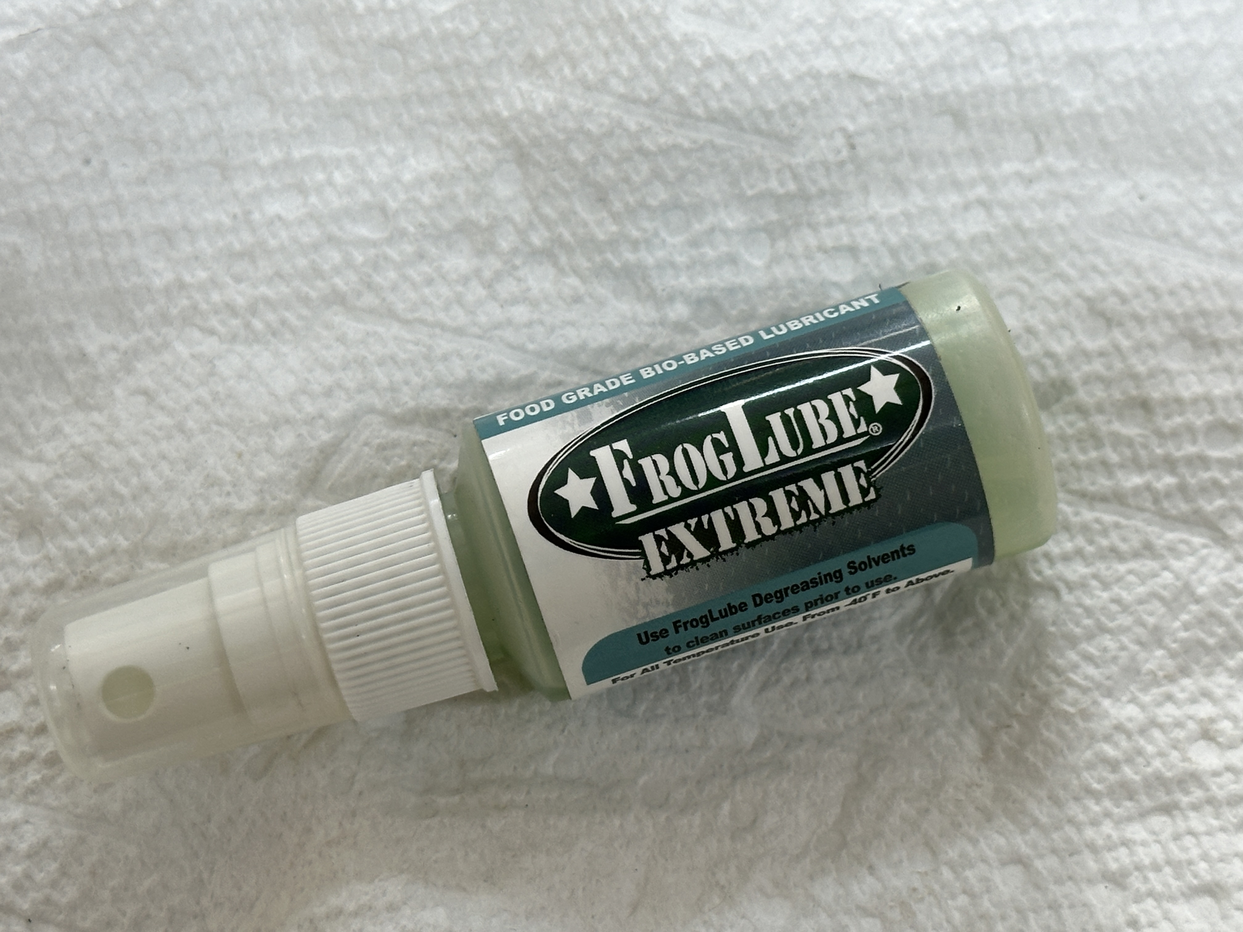 My second innovation is to try a different lube strategy. This is Frog Lube, created for guns. it goes on wet and then dries to a very durable film. See my other thread for more info.