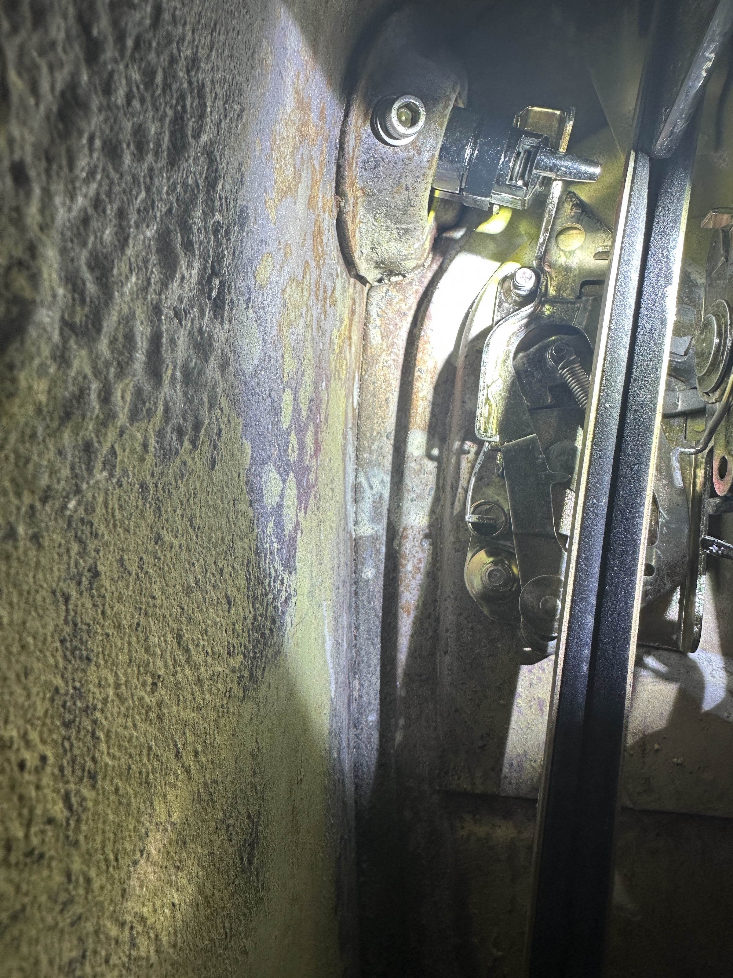 ok no comments to that, but I might have to try this , mine was a new mechanism a few years ago only but its really hard to open the door , its like when pulling the handle to open it, its sticking or catching, maybe like if the door is too tight, if i push on the door at the same time it then it doesnt take much effort to open it, it releases more easily if that makes any sense. I had thought about moving the catch on the door frame out a 1/8" to see if that would help, its like the seal is thick and putting lots of pressure holding it very tight which is good but makes it harder for the mechanism to release, and those plastic cams that slide to push the mechanism to release the latch are not very strong, I just put a new one in a couple months ago it broke, and i thought that would cure my issue, i ddont have that thick gunk in mine but also i didnt add any more lube when it was out, wish i had. - Phil |