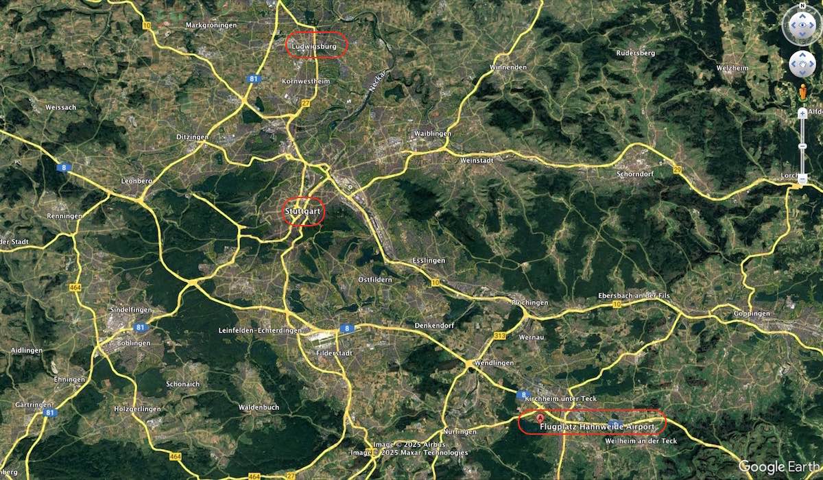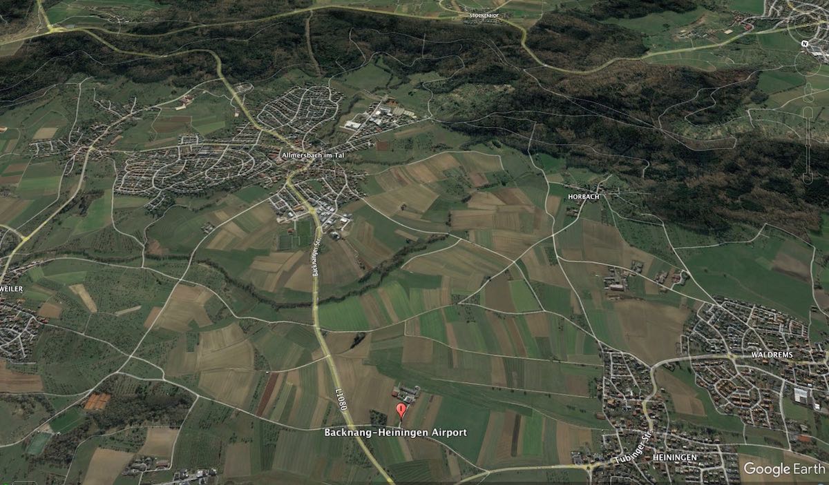 I agree that the Backnang-Heiningen Airfield would make a lot of sense due to its proximity to the Porsche premises, but upon careful scrutiny of the area on G-Maps street views, the hills in the original photo I posted look quite a bit more substantial in height than those in the Backnang-Heiningen locale. Then again it could be an effect of the camera lenses used.