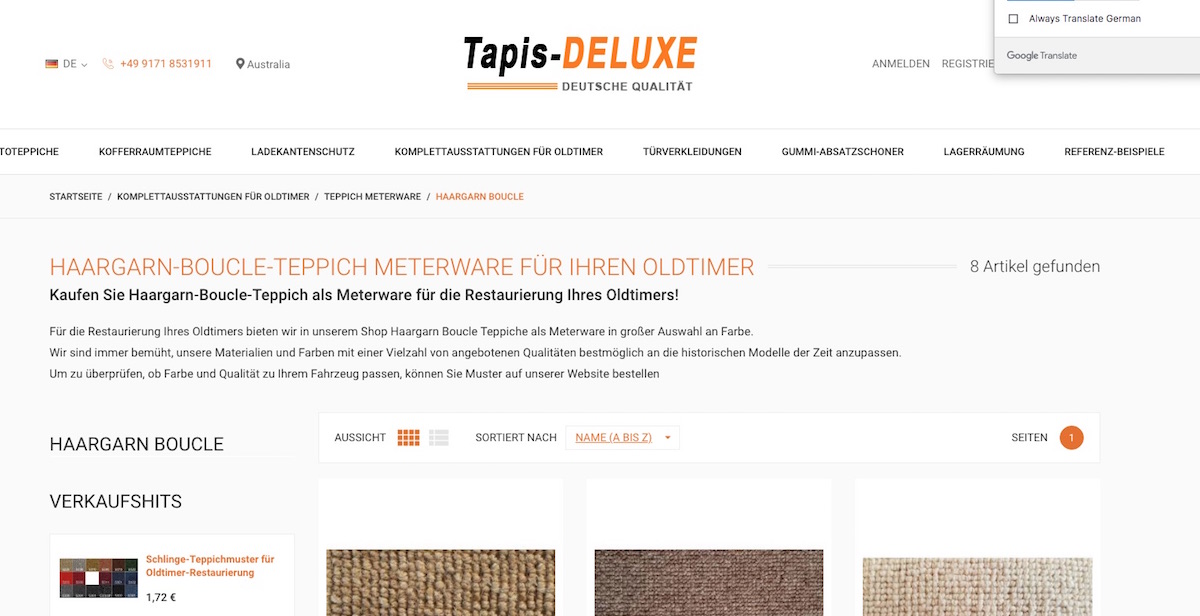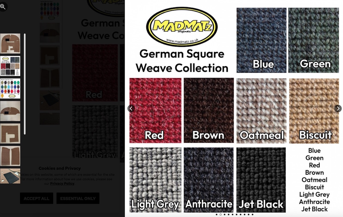 yes, correct carpet material is tricky for the 914s if its loop pile square weave type. periodically i make searches for the 74 brown carpet as stock, just in case i ever needed some to repair or fix a section of carpet. i have a set of rhd carpets i made of correct brown stock i wisely bought at the time (35 years ago, gee time flies! (IMG:style_emoticons/default/sad.gif) ). i got the raw stock in a roll from porsche australia back then! i have stumbled across this stuff and i think it could be close when it comes to black interiors. but never the brown. for an early 74 up to end of feb 74. this looks like it could be close to right? color - anthracite. and for later 74 mottled/salt and pepper. charcoal - top row. it would make sense that VW was using same or similar carpet stock to MB - at least for the top spec of the line VWs, which 914s and sciroccos were. but again you would need samples to see how close these really are. alas i have never stumbled across anything remotely resembling the 74 brown loop pile. which is a shame. i understand that some LEs came with brown interiors too. creamsicles i think. (IMG:style_emoticons/default/beerchug.gif) |