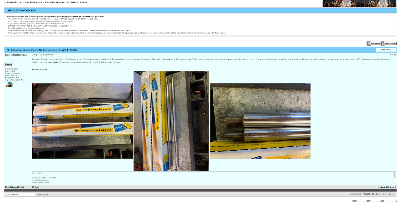 Pretty terrific that you have the bilstein suspension package on your 914, very few were ordered with it, we sell about twenty strut replacements per year for that setup