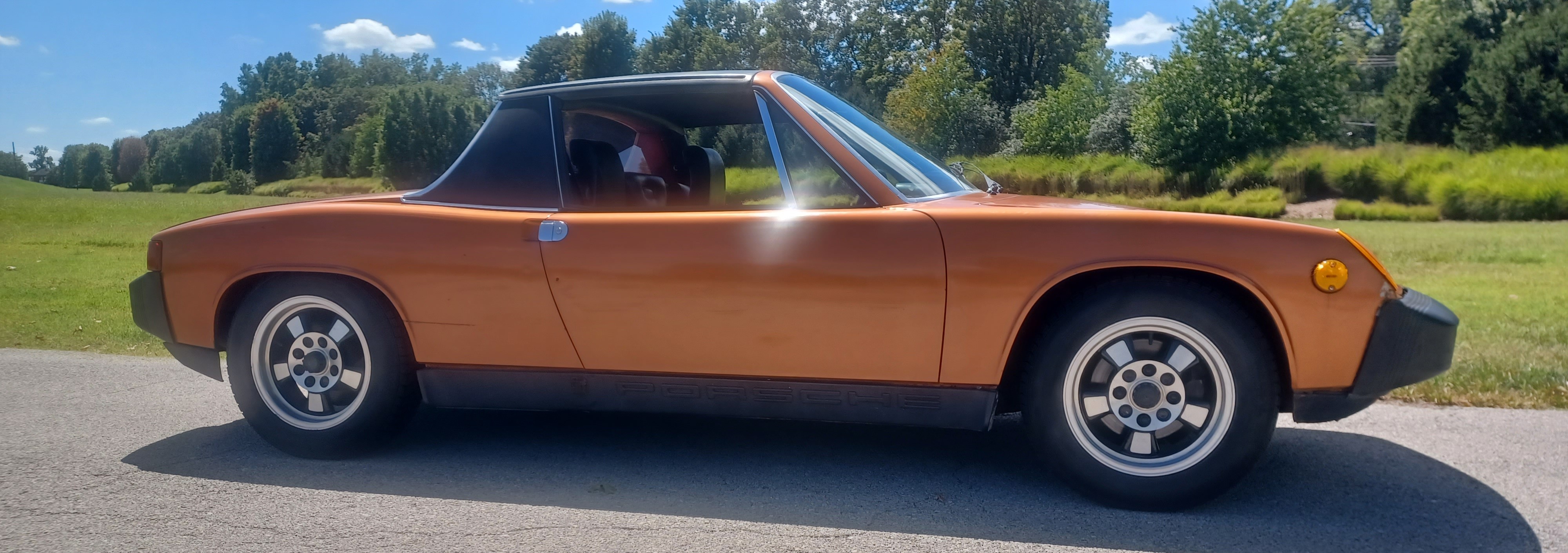 Pros: Rare (one year only) L99K Copper Metallic exterior! Near Perfect OG factory dash! “Unicorn” level 914 feature! Engine recently rebuilt by Vintage Porsche VW expert Tony Proasi using new AA cylinder heads and AA Big Bore Kit Factory Fog Lights Center Console with Gauges PORSCHE Rear Center Reflector Riviera Alloy Wheels New Fuel Tank and Fuel Line Screen Factory Bosch 1.8 L Jet Fuel Injection with new dual FI relay, fuel filter, vacuum hoses and fuel hoses Bursch Performance Exhaust System with Spare Muffler New Battery New Accelerator Pedal and Pedal Pads New Fully Retracting Antenna with Key Replaced Oil Filler Funnel and installed new Oil Filler Cap O Ring and Oil Filler Housing base gasket Starts right up, runs and idles great! Also included: Custom fit terry cloth car cover, front bra, outdoor fitted car cover, 5 OG factory styled steel 5.5 x15 wheels, excellent used factory battery tray with stand (has all factory mounts for ECU, etc. unlike repros, bought from 914 Ltd.), factory correct 75 1.8 charcoal canister and bracket with new hoses, front metal cover for under tank / steering rack area and spare Bursch muffler mentioned above. Cons: Older repaint in the original L99K color is a “10 footer” with several dings, dents, scratches, peeling clear coat, etc. Drivable as-is but wouldn’t recommend driving long distances without further assessment. Brakes, shocks and transmission synchros likely need attention. Small oil leak at oil temp sender (likely an easy fix with new / additional gasket). Design flaw / very common 914 issue. Clutch cable conduit / tube has been “fixed” but needs permanent repair (fairly easy DIY repair with a MIG, I’ve done this repair before and documented it on 914world). Again, design flaw / very common 914 issue. Wipers, fresh air blower and horn not working. (may be easy fixes ex: tach was inop and simply needed wire switched to the other coil terminal). Needs heater cables replaced, metal hose connectors and gaskets on heater boxes and topside heater blower hoses. NOTE: Heater blower does work and heater flapper boxes present. 90% tread on tires with minimal dry rot, but tires are extremely old and possibly out of round Rust present on rear end of battery tray (have repair sheet metal, see above), small amount in hell hole area and on underside near passenger side rear “donut”, drivers side qtr. panel adjacent to roof sail panel, bubbling on back trunk edge and perforation near center back edge of rear trunk floor. Have pics of all these areas. Missing passenger side door pod below arm rest and sun visors (have sun visor pins). New repro sun visors are available from several vendors. Seat bottom bolsters on driver side have seam separation. Running, driving 914 that would be great solid “driver” with a few fixes or an Excellent full restoration candidate! Happy to provide additional information and / or additional pics. Price: $14,000 or make offer NOTE: Car is currently in Louisville, KY  |