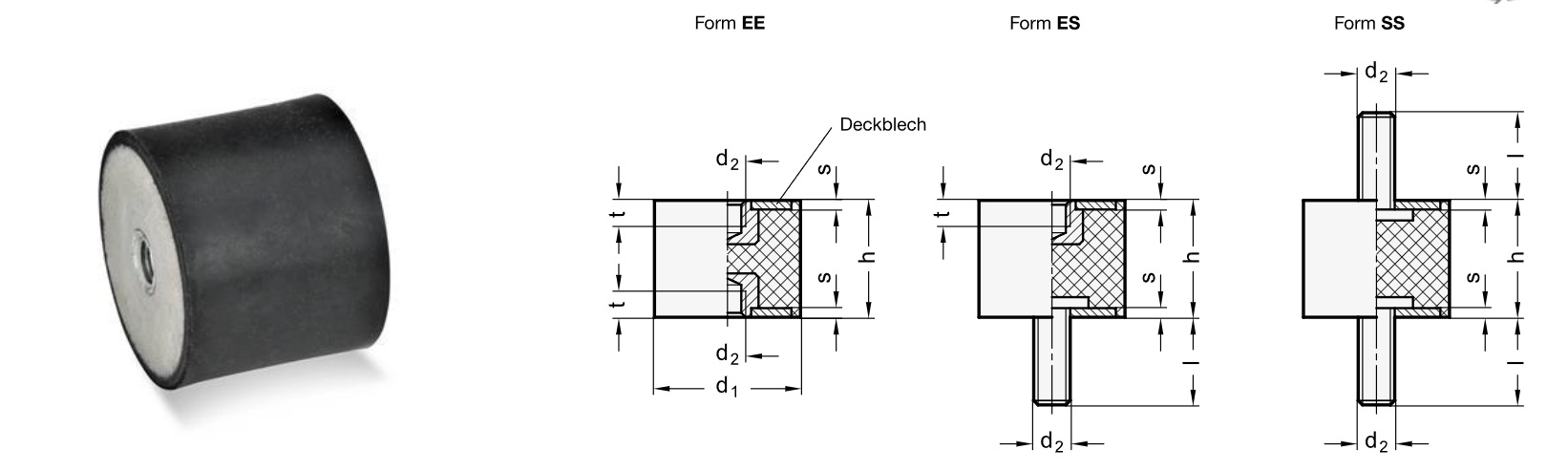 10mm in diameter, 10mm high, M4 threaded studs (Form "SS"). Three different Shore A hardnesses available, 40, 55 and 70. The same ones without the "necking down" in the middle are also possible: The idea is to mount the standoffs to the body sheet metal and then be able to easily bolt/unbolt the MPS on the protruding studs with M4 locknuts and flat washers. What do you think? The mounting should be soft enough to damp out vibration but not so soft to allow the thing to shake significantly. |