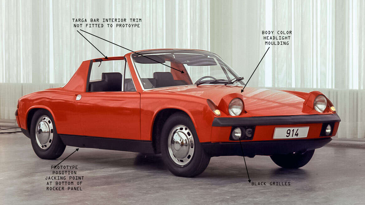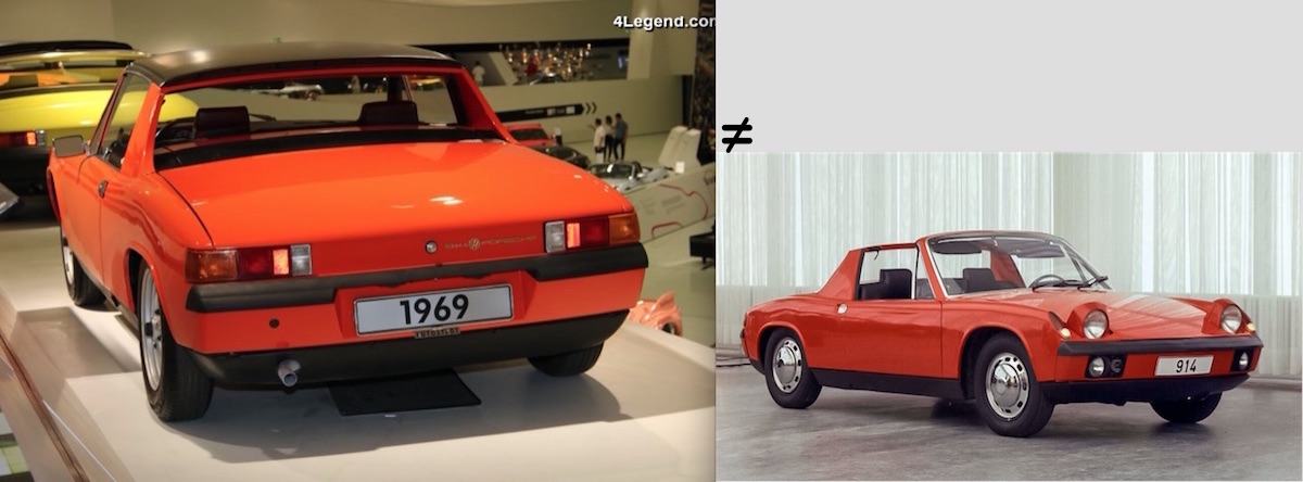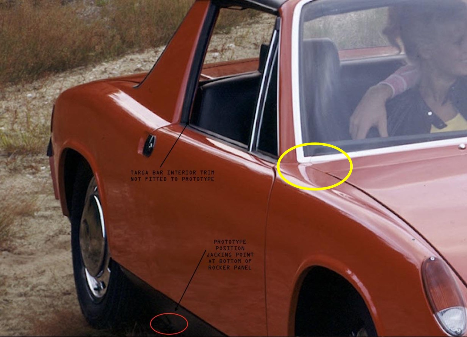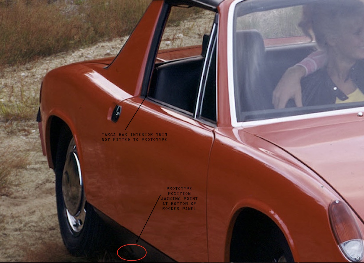 to left present condition of car - to right a possible image of it in an earlier original state. a speculation perhaps triggered by the present condition of the tangerine orange car with self evidently incorrect rims appearing to belong to the 74 model year instead of original 70 model year rims. leading to some suggestions that the car has been "freshened up" either significantly or in a minor degree along the way and that the image to right is therefor its original state. ----------- recently i stumbled across this much higher resolution image of the car to the right. this reveals details that make it clear the two cars are not the same car. see notes on image. its very clear that the more red-(ish) car is either a prototype car, one of the 8 known to have been built in 1968 or a pre-production car prior to the full production run. the big giveaway is the jacking point in the rocker panel. it is situated low down near the underside not near the top as production cars had. images of surviving prototype cars share this position of the jack point lower down. refer the piech 914/8 which made use of a 1968 prototype body as its basis. some other details become clear as well. the lack of interior trim panels on the targa bar. both side and top trims are missing. probably not yet hand made as a part and not fitted to this very early prototype car. unlike the very early base model 4s it does not have horn grilles painted body color to match the body colored bumpers. in addition the plastic headlight surrounds are body color when the production cars had white surrounds. the sail panel trims are chrome even though the sail panel is body colored (no vinyl). the very same car gets used for very early publicity shots for brochures at the time of the cars launch. its not this car. they are not both necessarily the same color "red" cars. the prototype car could be a deeper red. there is no mistaking the #1 production line car as tangerine. photo colors are not necessarily reliable. the #1 car exhibits all the features consistent with an early year production cbase model 4. body colored bumpers with matching painted horn grilles. body colored sail panel trims. who knows what color headlight surrounds are as i can find no image anywhere with the headlights up. but i will bet they are white. (IMG:style_emoticons/default/smile.gif) this image taken from projected images that were part of the 50 year exhibition of the 914 at the porsche museum could be the tangerine #1 car in its original state before the fitment of update 74 VW sport rims. although it appears to have a radio aerial and i can't detect one on the recently taken images of the tangerine #1 car. whatever, it once would have had the VW embossed hubcaps. ![]() as an aside the sport rims fitted to VW #1 are not in fact correct. they are the deeper offset 5.5 rims that were fitted to VW beetles. the 914 sport rim had a noticeably different offset from the 4.5 and 5.5 rims fitted to the beetle at that time. (IMG:style_emoticons/default/biggrin.gif) ----------- you can never say for sure - but there is a good chance that the red car, sometimes associated with the #1 VW museum car, is maybe one of the two red prototypes amongst the 8 being constructed, visible in this photo of the karmann factory taken in 1968. (the photo can be dated from the front bumpers on the production line karmann ghias). but who knows. it could also be in between the prototypes and the full production cars. whatever it was it was evidently available for use in taking very early publicity photos likely in advance of delivery of any production cars. ------------- i think there were definitely a series of pre production cars that existed before the production line start up. this was definitely the case for at least a few of the cars at the frankfurt motor show launch. there is no karmann plate in the door reveal! ? (IMG:style_emoticons/default/idea.gif) i suspect these are press release cars and were never sold to the public. they may have not had a vin number or chassis identification number that is part of the production sequence. these launch cars also differed from the production cars. fully carpeted front trunks. no seam between the front fender and cowl. they also appeared to lack the central vent in the top of the dashboard that early 4s had. |