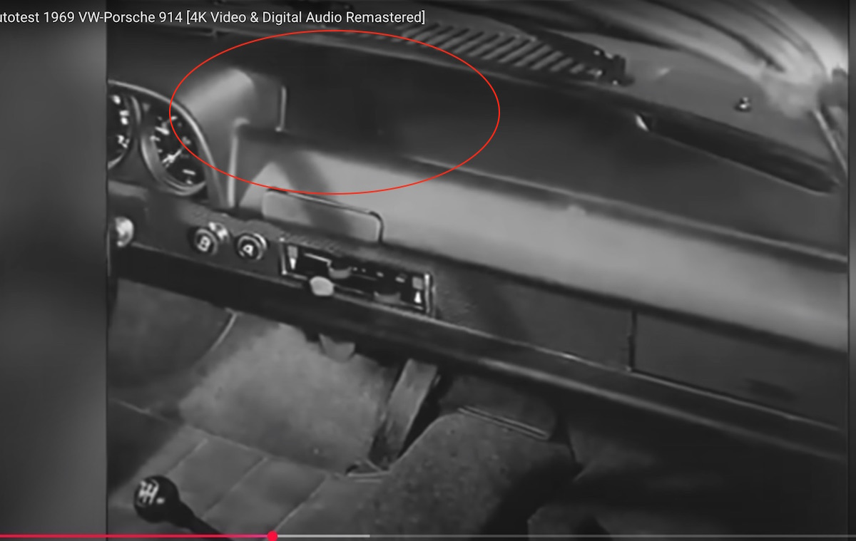 fun to watch as the tv show used the mercedes test track in stuttgart as the fliming/test locztion. nice to see the 914 hanging off the vertical curve the c-111 mercs would have been relentlessly hammering around about the same time. this car seems to be just like the launch cars at frankfurt. have the parallel or linear cowl to fender joint. the #0001 vw car eitehr has this cowl joint or one that is filled and is flush (hard to tell in photos of #0001 car, can't find an image anywhere that has enough res to be able to determine exactly). has no central vent in dashboard. by the time they got to 1200 cars (dec 69) in the production run the cowl/fender junction is the more familiar curved junction with VW panel filler plastic moulding filling the seam. ![]() |
