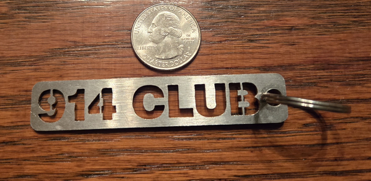 FS 914 Club lazer (plasma (IMG:style_emoticons/default/confused24.gif) ) cut key chain. In the days before the big split this site was called 914 Club. I dont remember who or why but these key chains were made. I used it for while on the old white racecar (aka Moby) then it has spent many years in the desk drawer after I sold Moby.