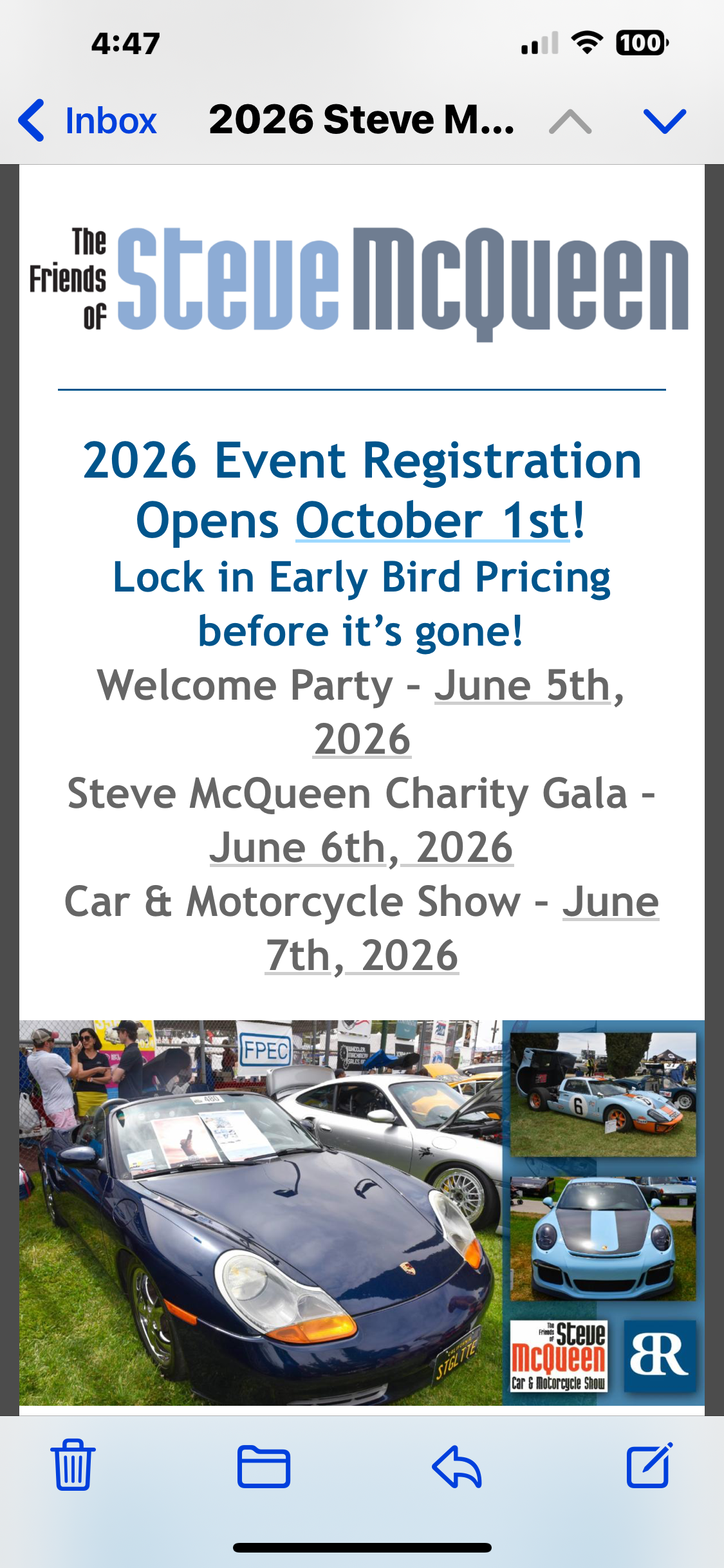 When you register, add "914 World" in the remarks or club affiliation and they will get us a designated group area again. (IMG:style_emoticons/default/icon_bump.gif) I'm about to register. Who else is going???? O The 2026 Driving season is opening up (IMG:style_emoticons/default/driving.gif) (IMG:style_emoticons/default/driving-girl.gif) (IMG:style_emoticons/default/beer3.gif) (IMG:style_emoticons/default/beer.gif) (IMG:style_emoticons/default/beerchug.gif) (IMG:style_emoticons/default/driving.gif) (IMG:style_emoticons/default/driving-girl.gif) |
