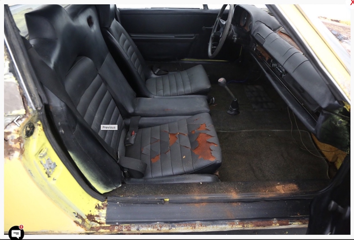 completely rusted out 6 that was for sale at the "salubrious" dealers in LA. vent covers are there. think this one is very trustworthy as its obvious no one has really touched this car except to apply some lipstick in the odd place to make it appear somehow more complete than it was. (IMG:style_emoticons/default/biggrin.gif) a vent cover can also be detected peeking out on this 916. which were based on 71 914/6s i believe. but having said that, the yellow 916 auctioned a year or two back did not have the vent covers. however it had been restored. so could easily have lost them. i think given these covers were to some extent rust traps with the foam filter in behind them any car that has been restored has likely had them removed for fairly sensible reasons. and most 914/6s have been restored at this point making it hard to find an unmolested example that has been documented. my opinion is that the 6s originally all had these vent covers. during the same period from 70 to start of 72 the 4s did not have them. as noted above. whatever goes on with later years of ROW 4s is very hard to determine. one reliable example seems to suggest not all those 4s got them originally. very safe to assume that all USA bound cars from 72 on got these vent covers. |