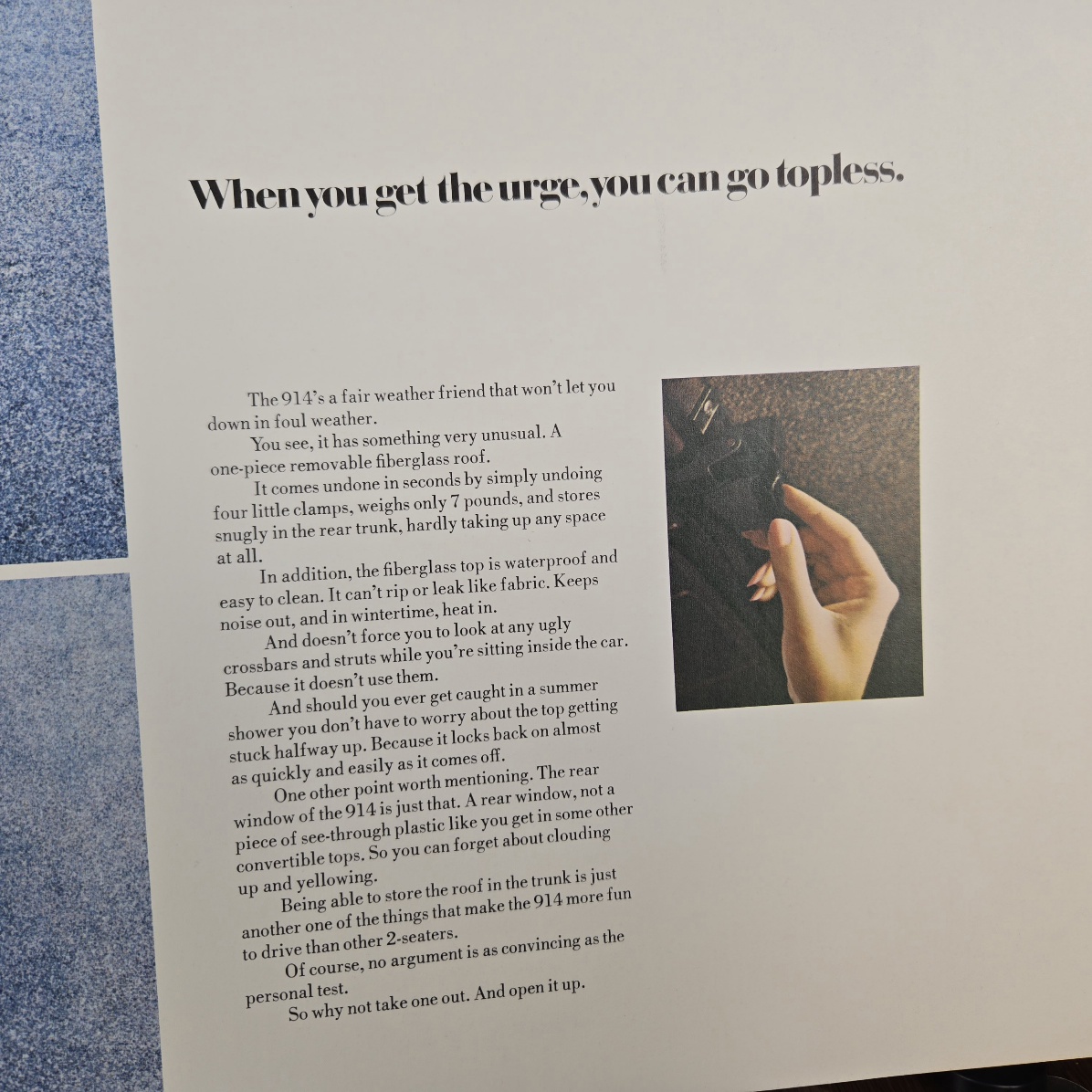 FS - Nice 1973 6 Page BIG dealer sales brochure. I have had this for some years displayed in my home office. It's a bigger 10x14 6-page brochure. It has some yellowing form age but still displays very nicely. You won't be disappointed.