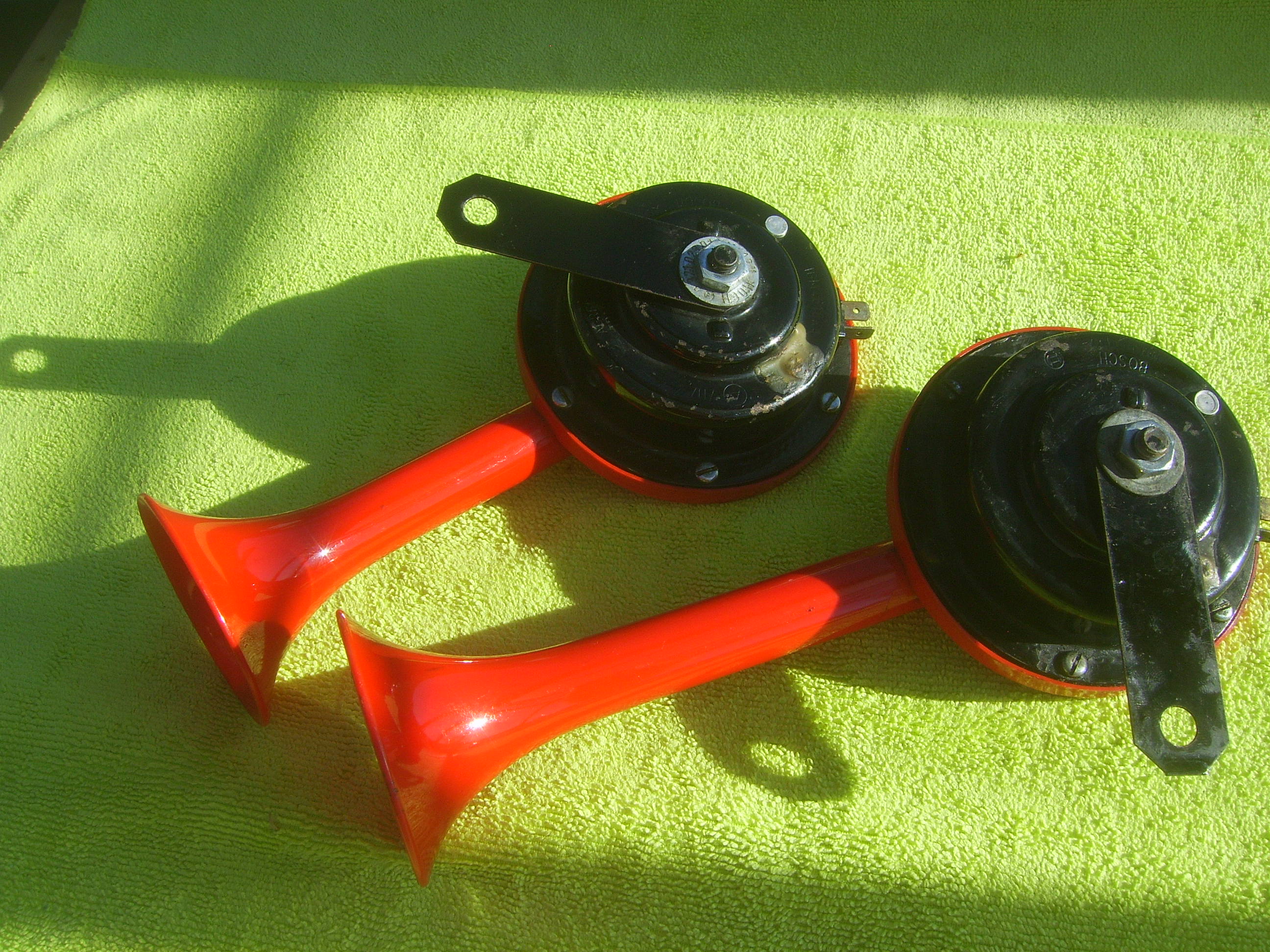 FS: Long and short Bosch red banjo horns, date code 026 (June '70). Both horns are working and are in very good condition without any cracks. Price 595 euro + shipping.