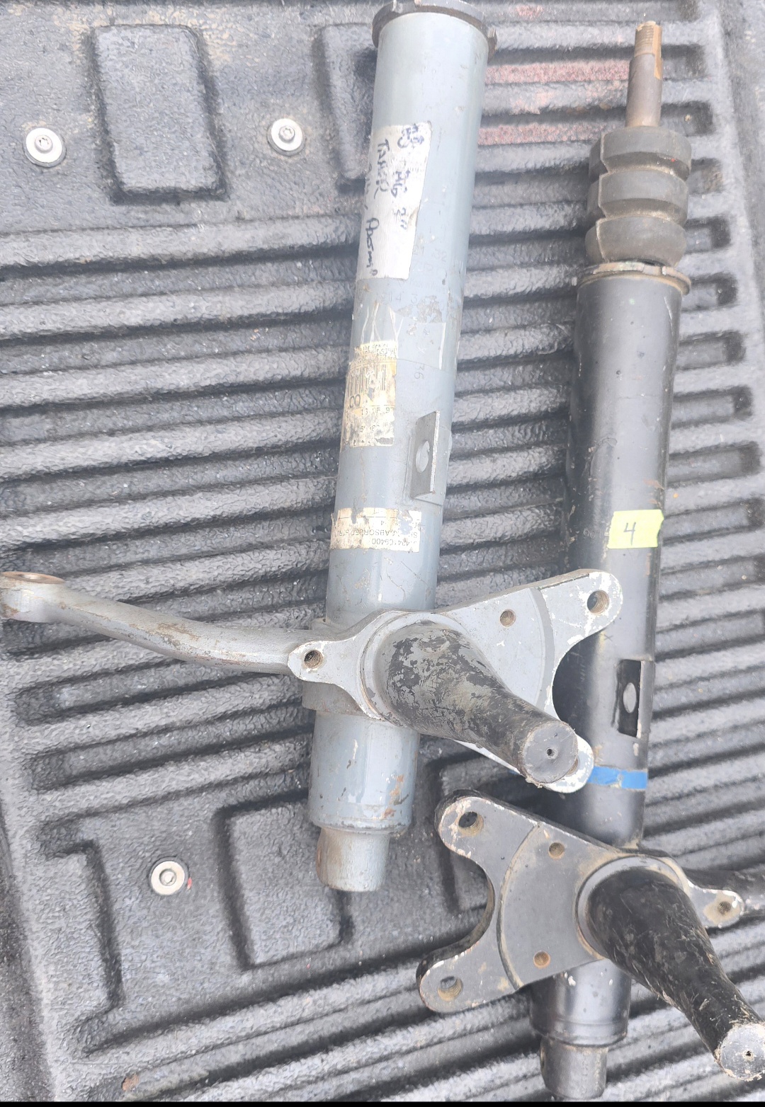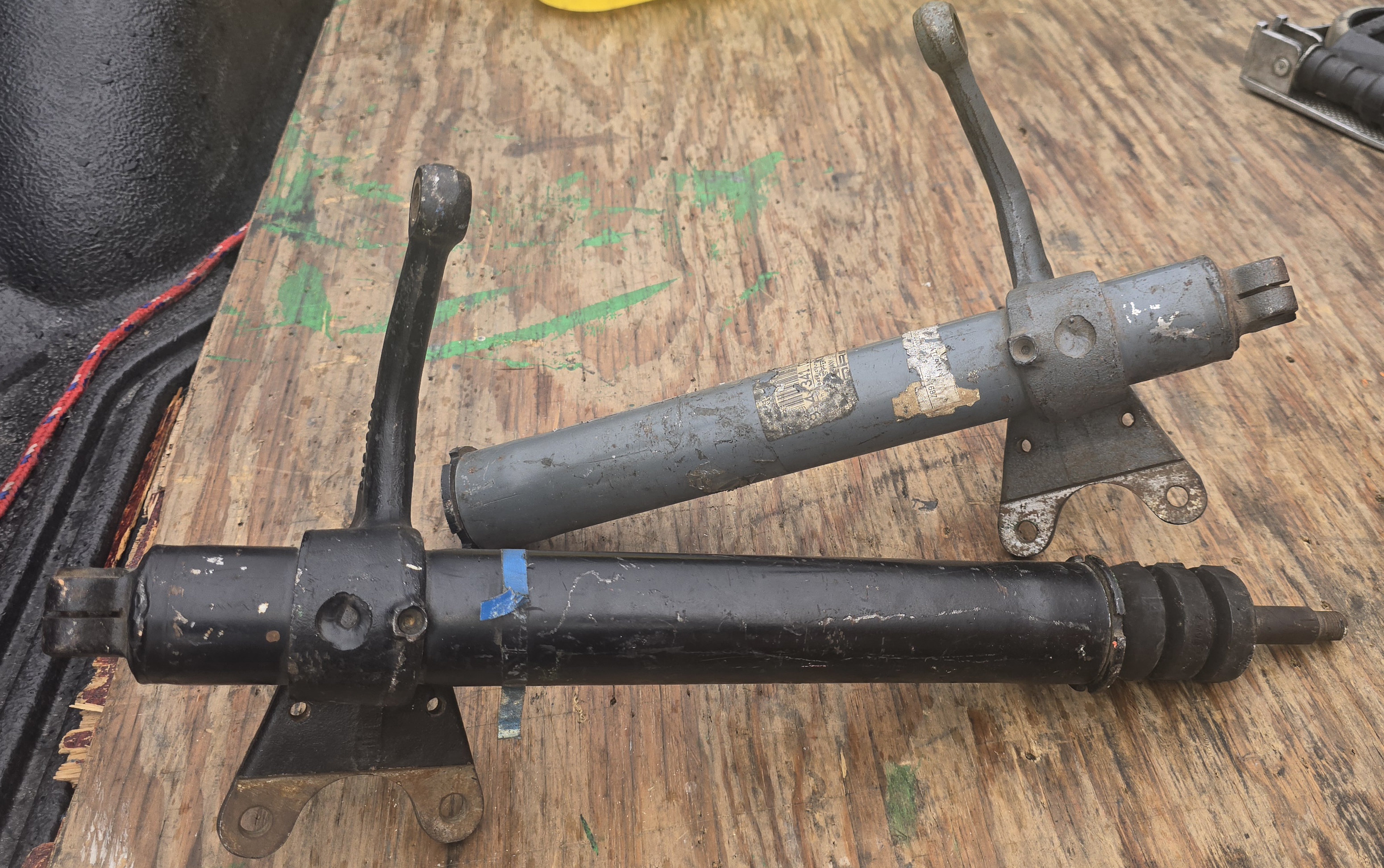 The Grey strut is a 914-6 strut with the 914 part number stamped on it. No insert with the 914-6 strut. The other strut is a 911 part number with factory new insert and bump stops. I prefer not to split them up. It is a match to the 914-6 strut other than the color and stamped part number. Great for a 914-6 restoration. $500 plus shipping.. Bruce Attached thumbnail(s) |