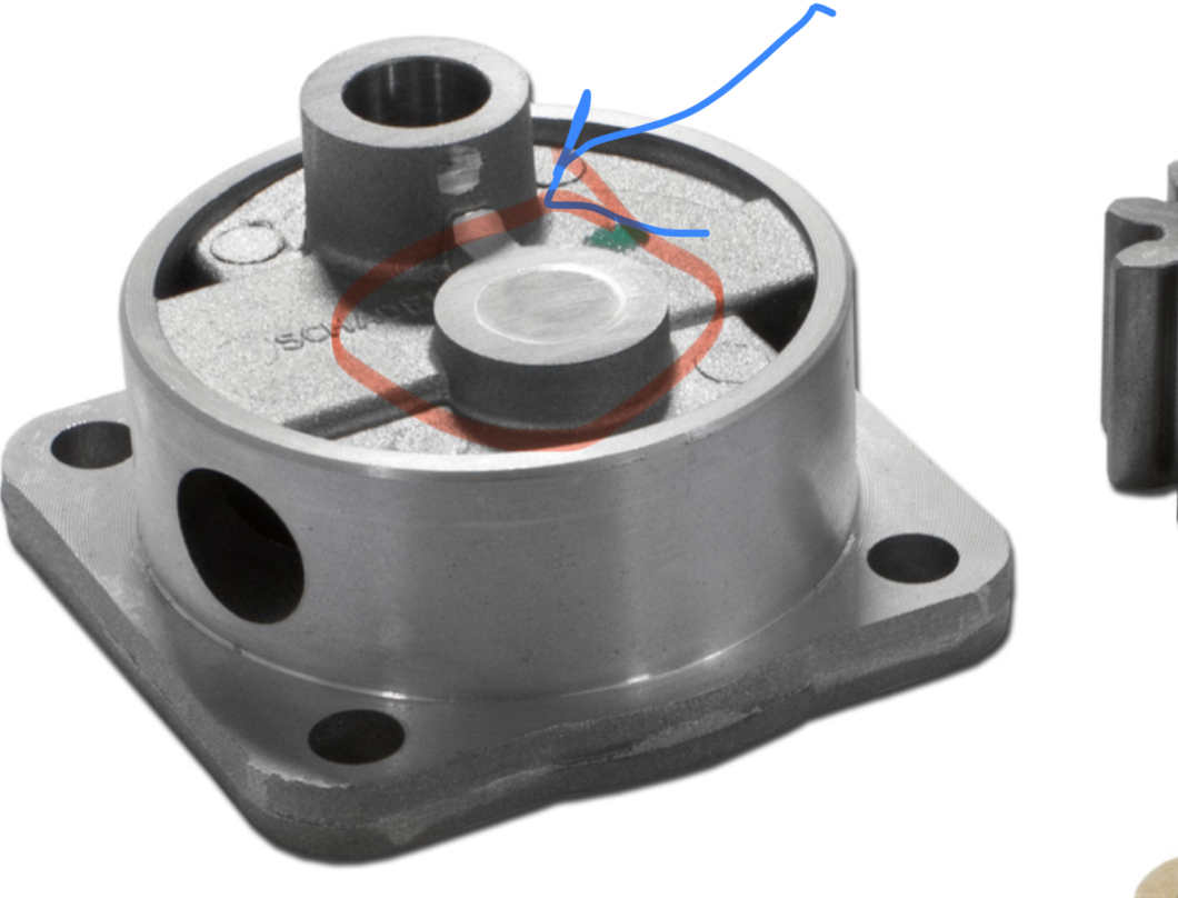 In the pump body - is there a noticeable “step” where one gear has worn lower than the other or is this little area just a lighting & photo abominably. Disregard the milled oval slot and that little triangular point from machining. I’m asking about the area where the two circular gear wear patterns overlap. ![]() Post photo of the other side of the end plate like this view so we can see where the idler shaft is at and whether it has been pushed out toward the cam. This perspective ![]() |