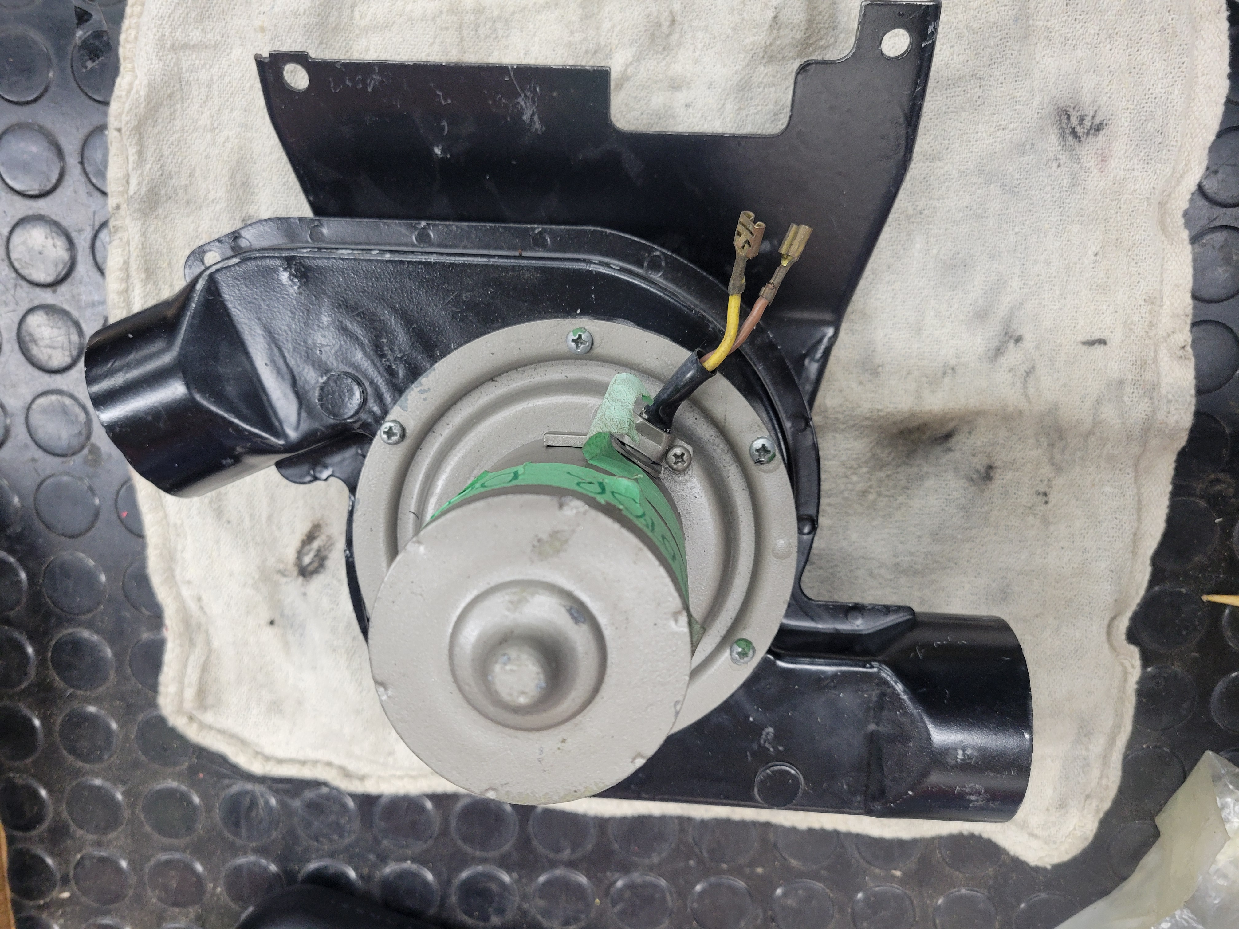 It came with two hot air blowers: Single Port - Working Motor In 1973 there was apparently a switch between the dual outlet blower to a single outlet with a Y pipe. I was thinking I would like to use the dual outlet one so I thought I would swap in the working motor. Two questions: 1) Does the dual outlet unit provide better heat flow through the heat exchangers than the single outlet with a Y connector? Any pointers to pictures of each type mounted/hoses? 2) How to remove the motor: Removed the 6 screws on the motor flange Thanks in advance Scott Attached thumbnail(s) |