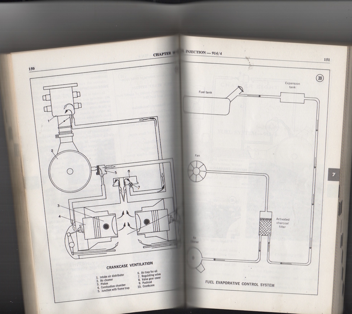 Thanks for the extra detail - engine intake vacuum pulls and engine fan pushes the fuel vapor laden air thru the can into the engine intake manifold. Simple enough. The intake vacuum should be ~-15-20 in/hg in a healthy engine right? I would be curious to know what the engine fan pressure supplied is and how it compares to the intake vacuum. It’s not critical though as they both do the same thing. In fact if the intake manifold vacuum is sufficient, the engine fan air would be redundant and unnecessary. Either way the can is a plenum with only three ports. Fuel vapor is supplied from only one port, from the fuel tank. Carbed cars may have a different fuel vapor source…the subject has not been discussed before, so I am thinking conceptually. The other two ports in the can either vacuum out the air in the can by applying intake manifold vacuum (purging) or by pushing air out of the can by positive engine fan air pressure. Both sources direct the fuel vapor laden air into the intake manifold. The basic issue then is that as long as fuel vapor laden air is directed through the charcoal media, either pushed or pulled though it, then the can is functioning to cleanse the airflow. My diagram requires the air to flow through all of the media, it has no other route. If the can is plumbed such that the small fuel vapor supply hose is at the same end of the can as the port to the intake manifold vacuum, then the fuel vapor only permeates the media at one end of the can and filtering would be much less effective. Basically a short circuit. This effect would be magnified by the engine air fan pushing air into the media, which further reduces fuel vapor permeation into the media. Conceptually, with both air movement sources, it would not matter how the can is plumbed. Fuel vapor can only be drawn into the can, the other two direct the air out, into the engine intake. One configuration may be more effective than the other, depending on the airflow balance directing air into the intake manifold. What am I missing here? not quite jeff. but kinda close to what i am saying. drop the idea the fan pushes air through the canister. i think conceptually that is what is clouding the matter in the way you are conceiving of it. it just "gently" floods it with oxygen. its a very small bore hose coming off the very side of the fan casting. its not in the stream of the full air flow. the draw from the engine intake is far stronger. and the two ports so to speak, the fan port and the air cleaner port are not equally neutral in terms of the connection to the atmosphere. the fan port is the most open "door" - when the car is sitting around not running and everything is static - if the charcoal is overcome. ----------- here is another fly in the oitment to consider as to why VW changed the internal arrangement of the cans (in particular the fume hose internal pipe you have noted). the plastic can and slight redesign also co-incides with VW phasing out oil bath air cleaners and going to paper elements. the internal chemistry of the air cleaner in VWs alters at that point. now its a paper element that will be the barrier to vapors from a fully saturated can flowing back into the air cleaner. thats very different to fuel vapors mixing with oil. i am no chemist. i'm just saying there are a few factors in the mix here that all overlap when it comes to why VW changed the cans to plastic and slightly revised the internals. its not as simple as a redesign of the can prompted the change in the plumbing -------which i might add i finally proved did in fact indisputably happen - its a few things that are changing at that time. BUT - in capital letters (IMG:style_emoticons/default/biggrin.gif) the one thing that VW never changed from 1970 on was the way the hoses hooked up on every VW except the 914/4. ---------- i got one more for you too. i got to scan the diagram. but i will post it next after i scan it. it comes from the clymer manual. i just decided to look at it again after about 20 odd years. i found something very interesting (IMG:style_emoticons/default/biggrin.gif) i'm not trying to argue with you. as much as you are i am trying to understand how that system actually worked that explains why it existed in the different forms it did over those few short years. because its a marvelously simple system that VW came up with as well as porsche. using just a dumb simple can with no valves. part of it is they always had the benefit of the engine cooling fan to flood the can with oxygen and no other manufacturer had that bonus element. it was thanks to air cooling. every other manufacturer used a valve, sealed off their can and had to rely on drawing in whatever fumes they could get the charcoal to release. but VW (and porsche) could also flood that can with extra air during purge. its a bit like their dumbo windscreen washer off the spare tyre. very analogue and mechanical and very very german. or more correctly very post war german. making everything work to its maximum out of a minimum. they don't do it anymore but they really used to do it. now they just do maximum (as i stare into the horrors of my uncle's merc CL500 currently in the shop! (IMG:style_emoticons/default/biggrin.gif) ) also the one other factor you are missing in relation to the 914/6 is the vapor load. its huge in the 914/6 from the carbs. via the air cleaner hose. and its virtually non existent in the 4 via the same route (there is no fuel hanging aournd in the EFI intake system - the fuel injectors are shut off. there is a (IMG:style_emoticons/default/stromberg.gif) load of fuel just sitting there in a carb bowl off gassing freely and happily). thats when the car is sitting there. right after you drive it into the carpark after driving to work or going home and turn the key and shut the engine off. and thats when the can is supposed to do its job. can you see where i am coming from. you are an architect. just think like one. thats how i am thinking of this