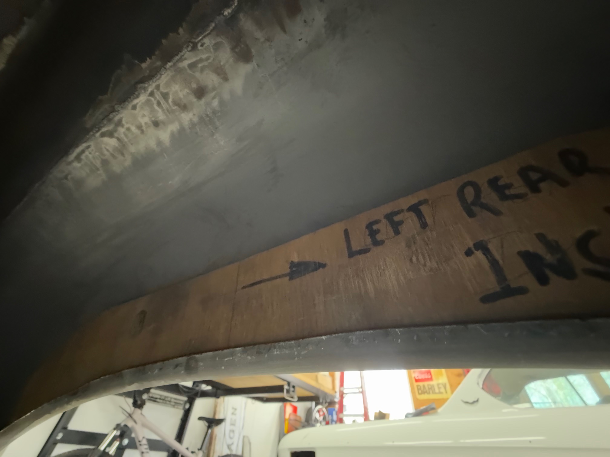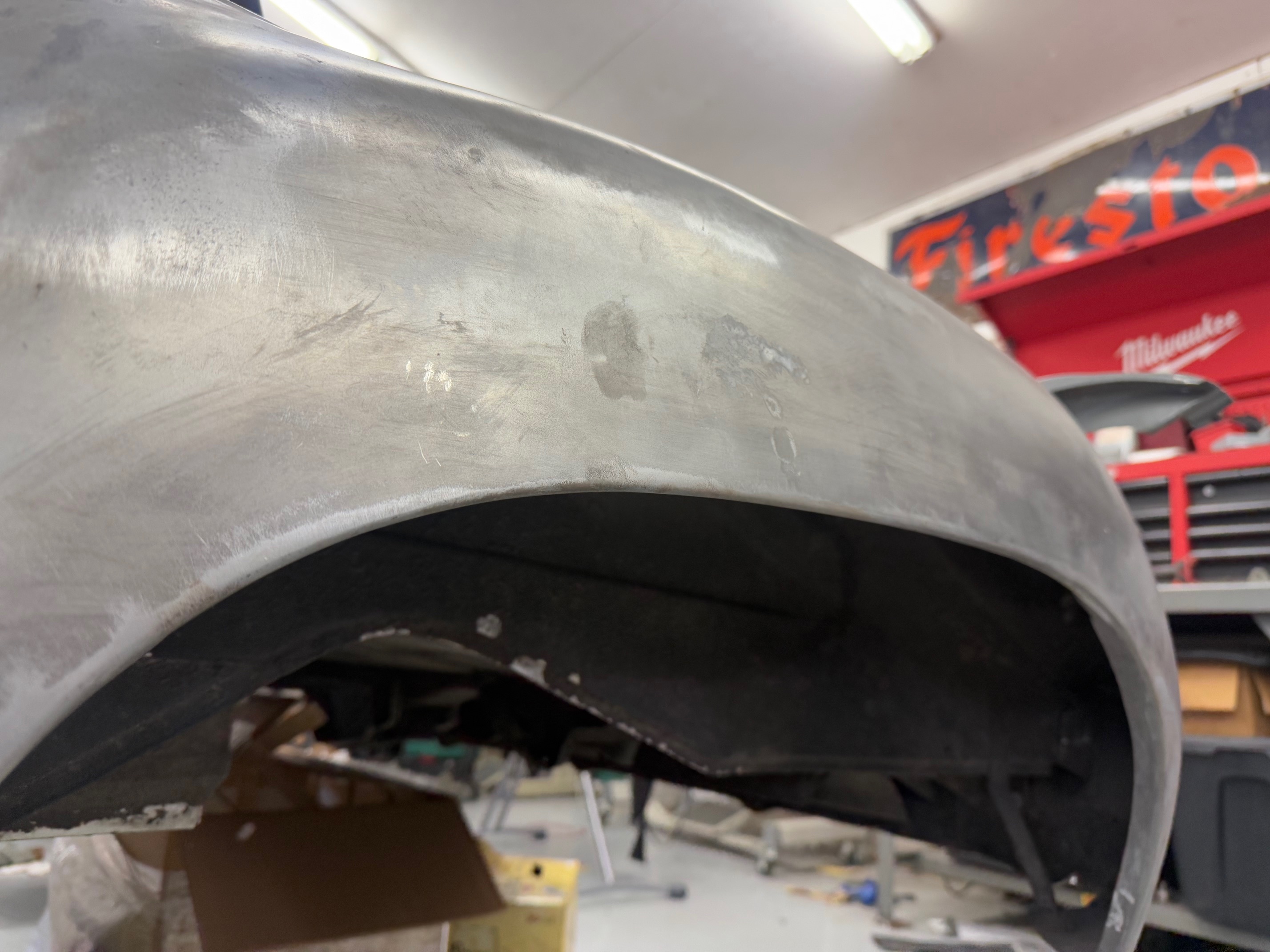 Rory let me borrow these templates to tuck the edge of the flair up under the car. It’s probably good for an extra inch of tire clearance. I’m about 50/50 on the look but I knew I wouldn’t have the chance after I painted the car. If I didn’t do this, I would have probably trimmed the metal. It is a bit wide on the reproduction flares.