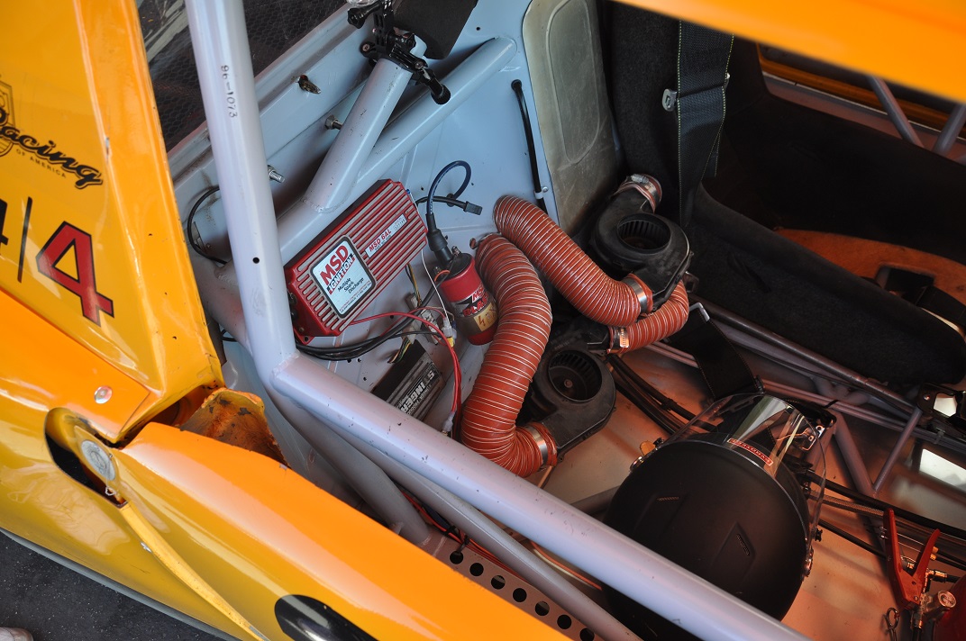 Maybe it provides better cooling distribution (cyl 3) and more cooling overall? (IMG:style_emoticons/default/confused24.gif) This racecar at Rennsport V was setup with two dual outlet fans in the cabin with two ducts each going to the engine tins in redundancy. At least if one fan goes, one is still pushing air. Unfortunately I wasn't able to picture the engine bay but the standard engine fan wasn't there, just the ducts. (IMG:style_emoticons/default/driving.gif) |
