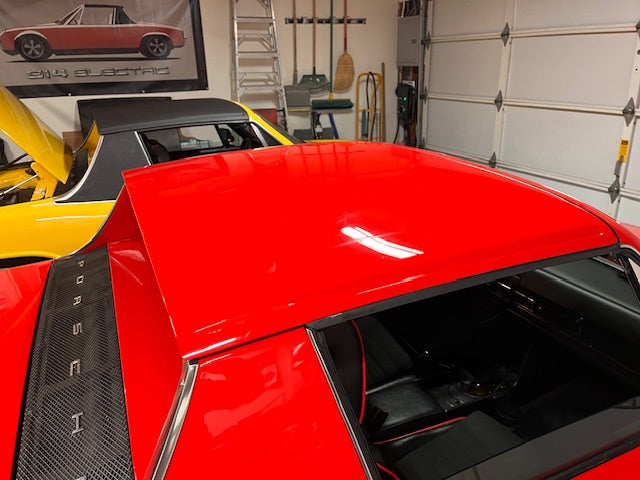 I'd really appreciate some more pictures of the top if you can post. extra 40% torque, details would be great! Sounds everyday usable. I actually inspected those numbers more closely, and had to revise my figures above. I discovered I was getting more HP and torque than originally calculated. The stock 1.8L delivers 84hp, and the HyPer9 motor outputs 120hp, which is about 42% more ponies. As far as torque, the stock 1.8L puts out 102 lb⋅ft, and the AC motor delivers 173 lb⋅ft, which is 70% more. So apologies, and pardon my faulty math. I'm glad you like the targa top. It's really just the usual, but has just been sanded, skinned and painted with the car. Here's another shot: (IMG:http://www.914world.com/bbs2/uploads_offsite/cdn.shopify.com-11660-1772837256.1.jpg) Cheers. |