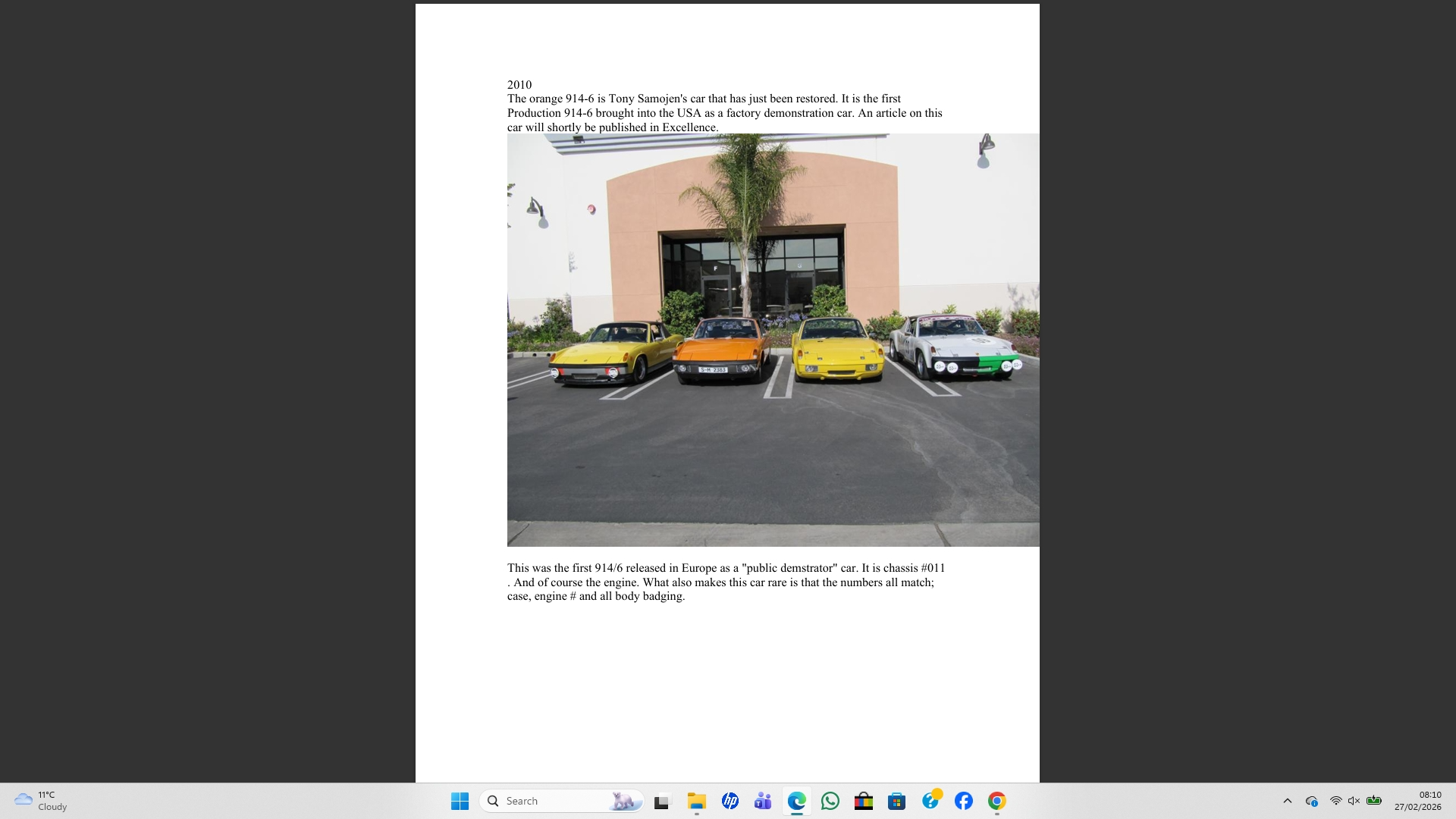 It was the first 914/6 GT prototype that was unveiled at the Porsche press release at Hockenheim Dec 69 for the 1970 Racing season. Car now resides in the USA and has been fully restored. Dave |